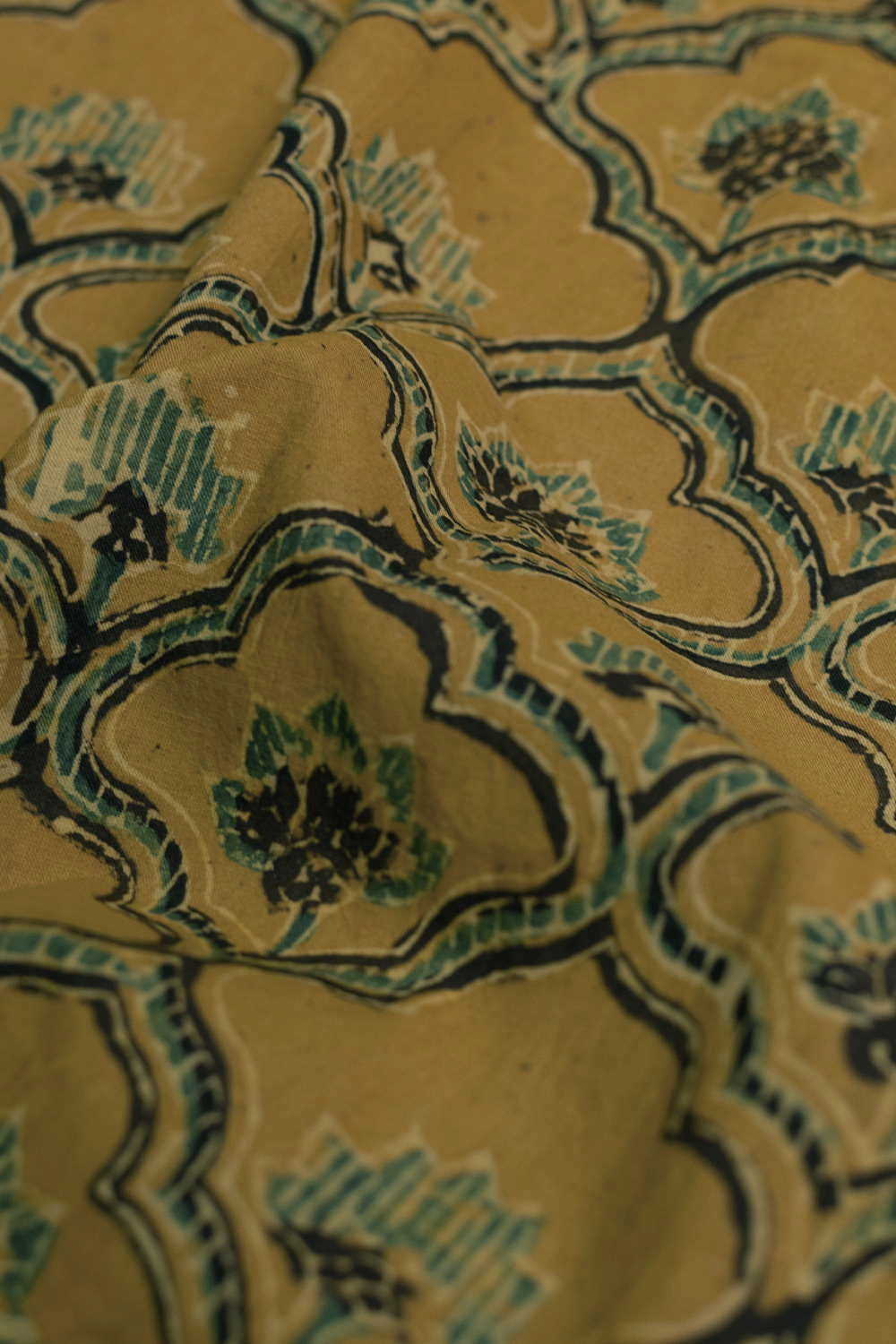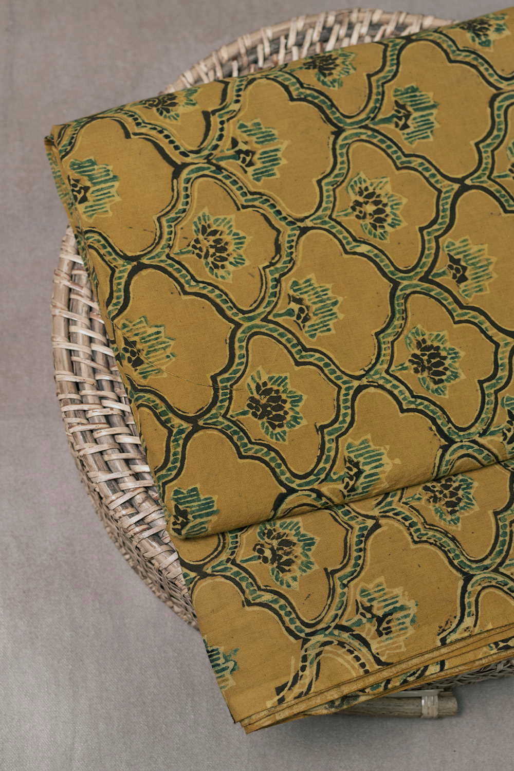 Yellow with Green Floral Pattern Ajrak Cotton Fabric - 0.7m