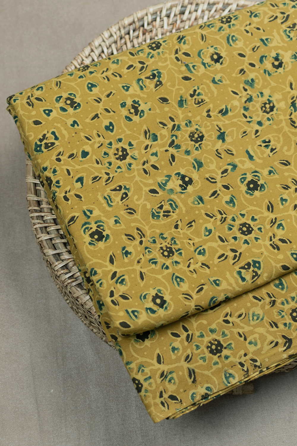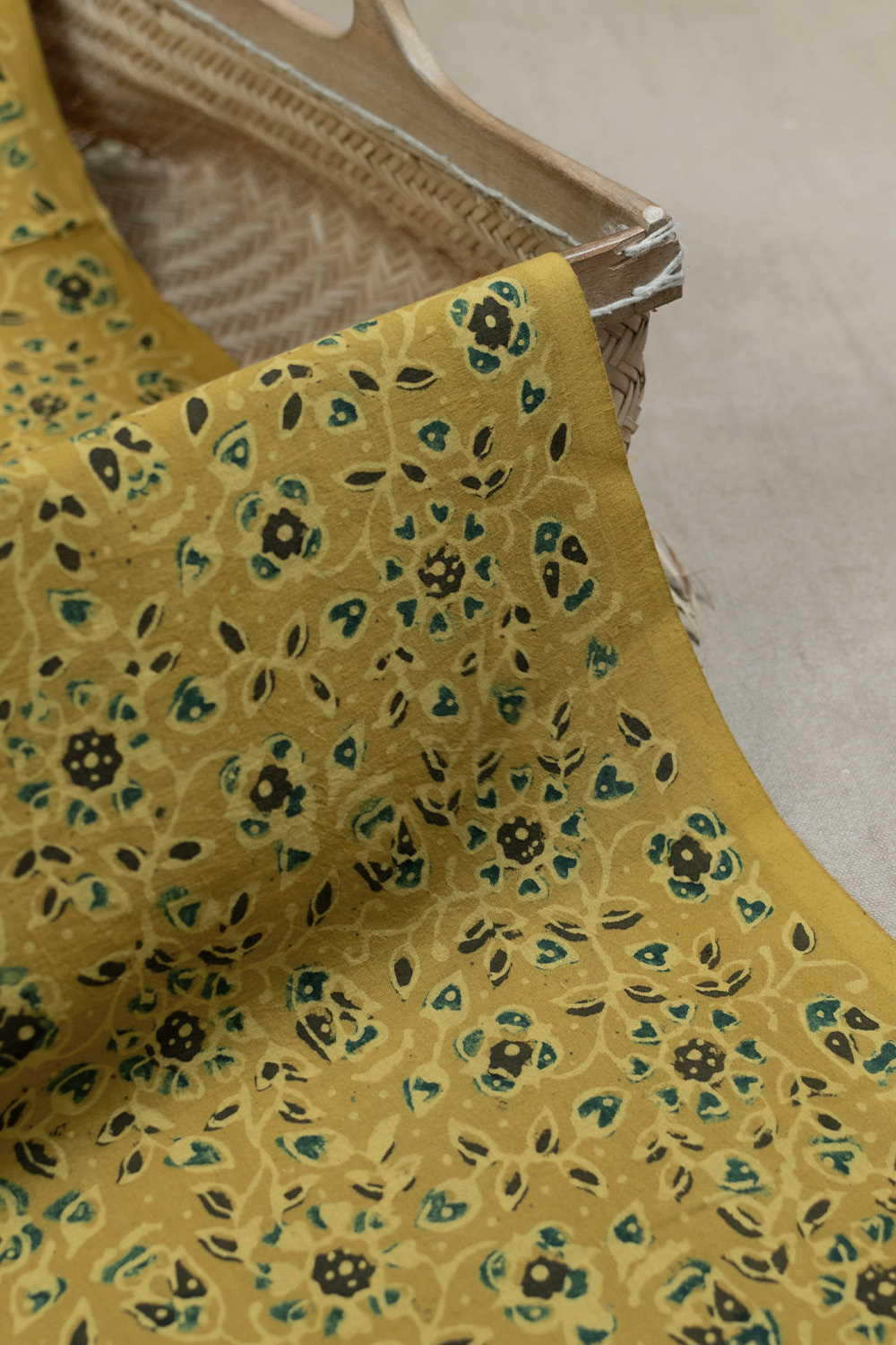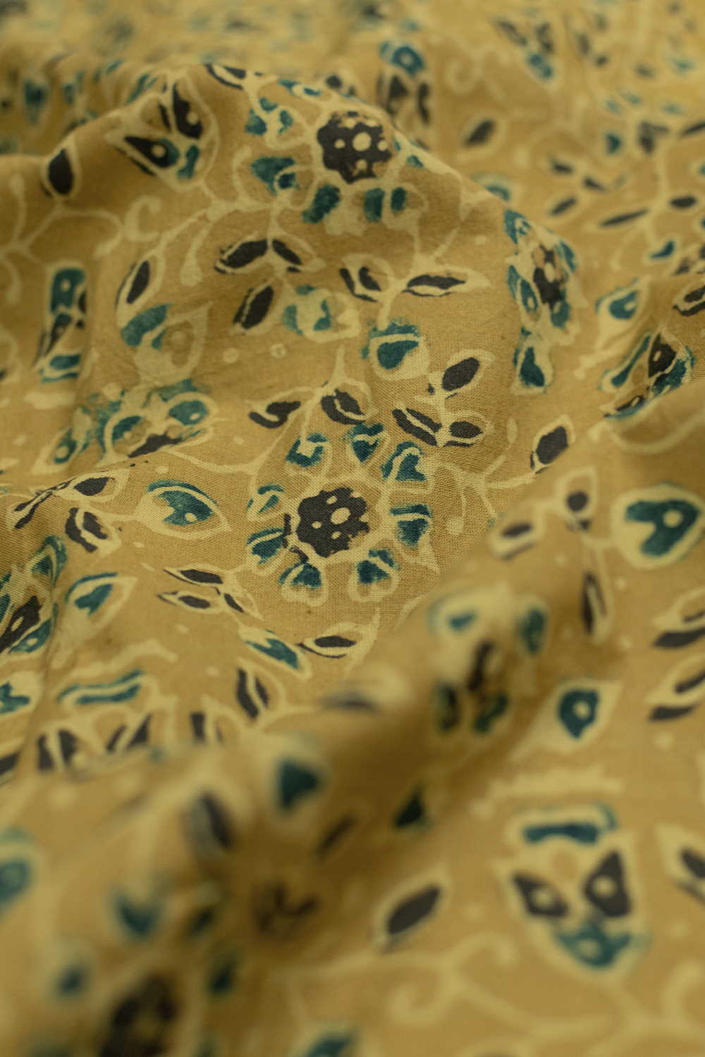 The Intricate block prints from Kutch with their Sindhi roots comes in definite geometric and floral patterns in natural shades. Ajrak is very distinct from the other styles of block printing and can be identified with the intricacy of prints and the natural tone. Soft cambric cotton fabric with Ajrak block prints - define your unique style. The Design is Parallel to the Length.