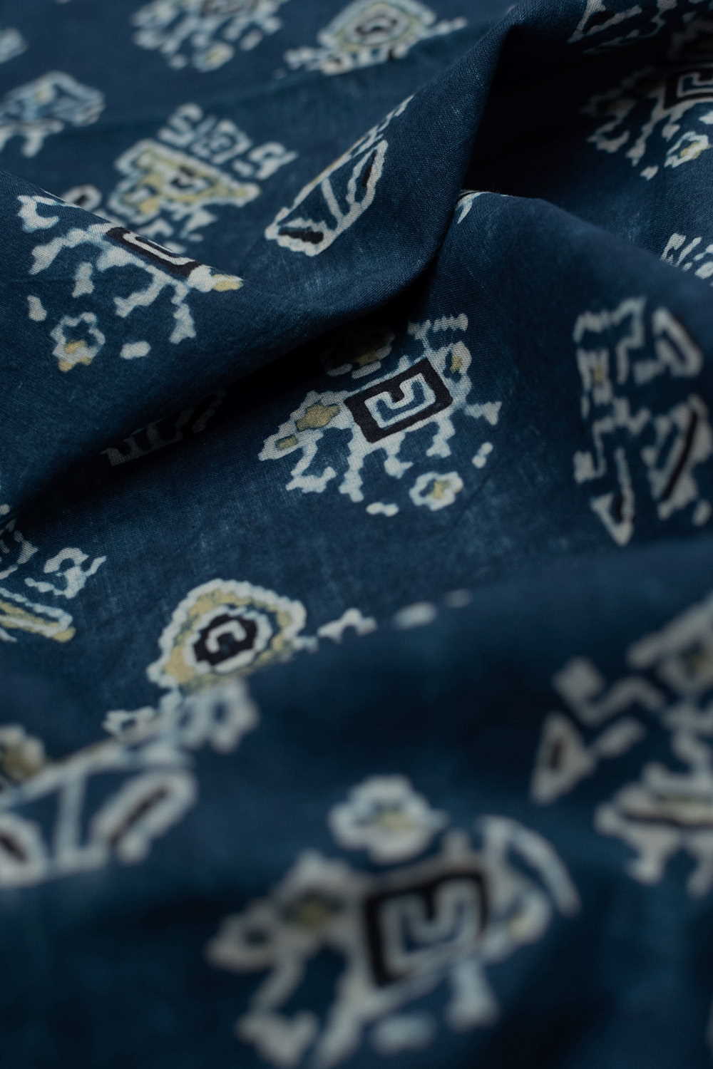 The Intricate block prints from Kutch with their Sindhi roots comes in definite geometric and floral patterns in natural shades. Ajrak is very distinct from the other styles of block printing and can be identified with the intricacy of prints and the natural tone. Soft cambric cotton fabric with Ajrak block prints - define your unique style. The Design is Parallel to the Length.