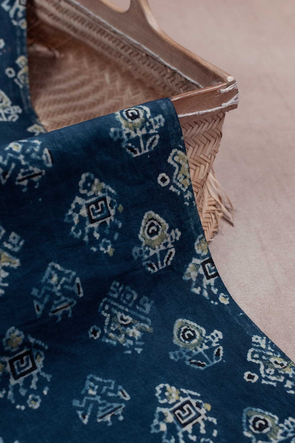 Dark Indigo Ajrak Cotton Fabric - 0.7m