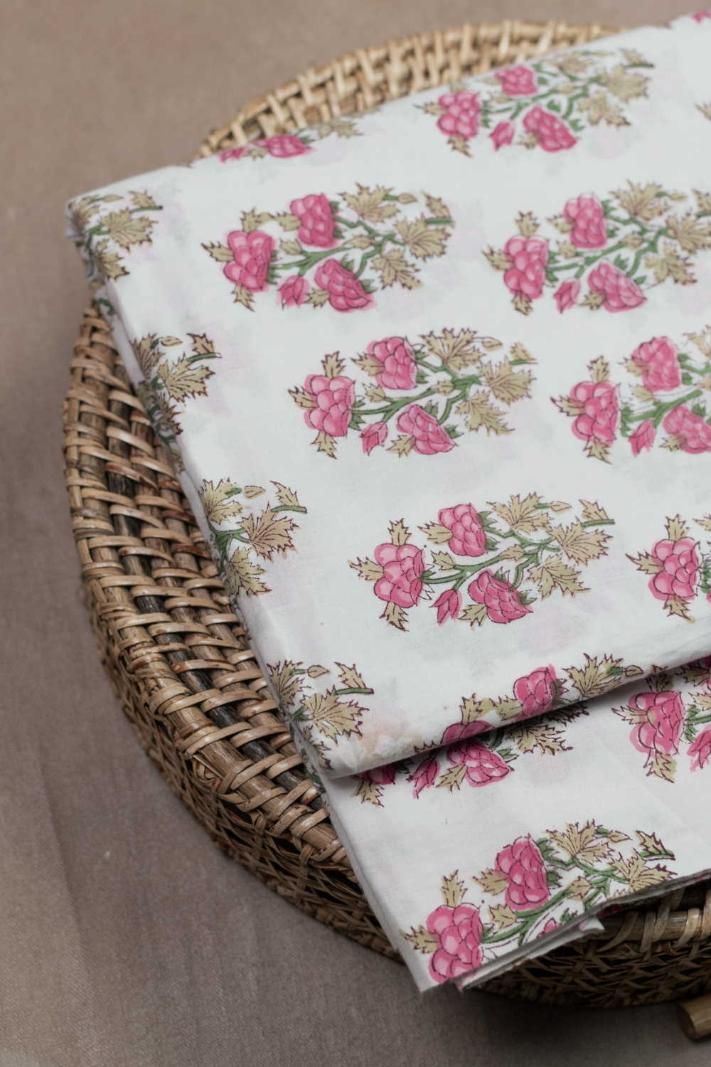 Pink Buttas on Cream Sanganeri Cotton Fabric - 0.85m