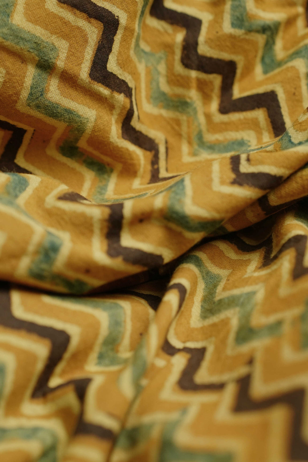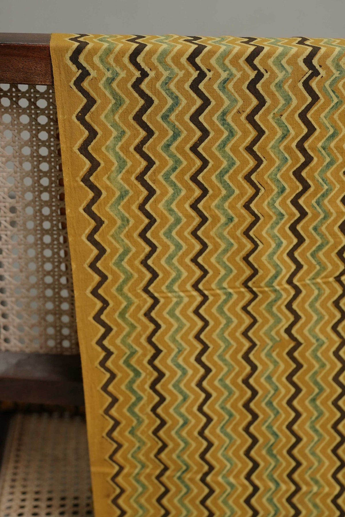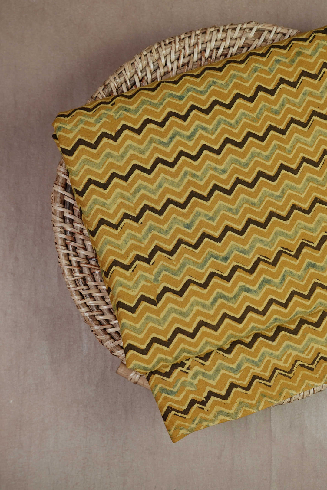 Chevron on Yellow Ajrak Cotton Fabric - 1.85m