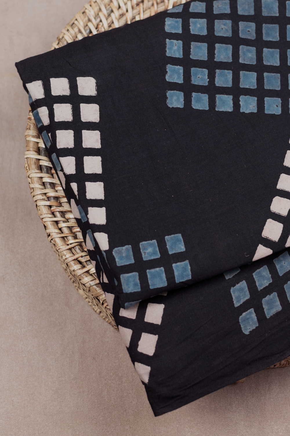 Black Ajrak Cotton Fabric - 0.75m