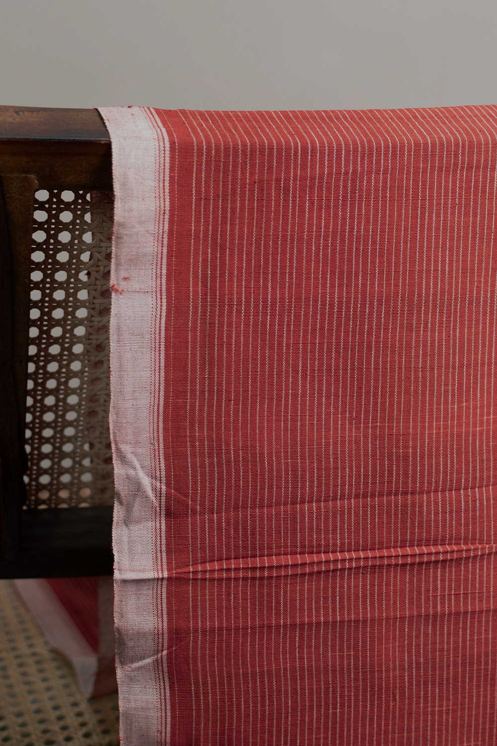 Stripes on Maroon Handspun Cotton Fabric - 0.5m