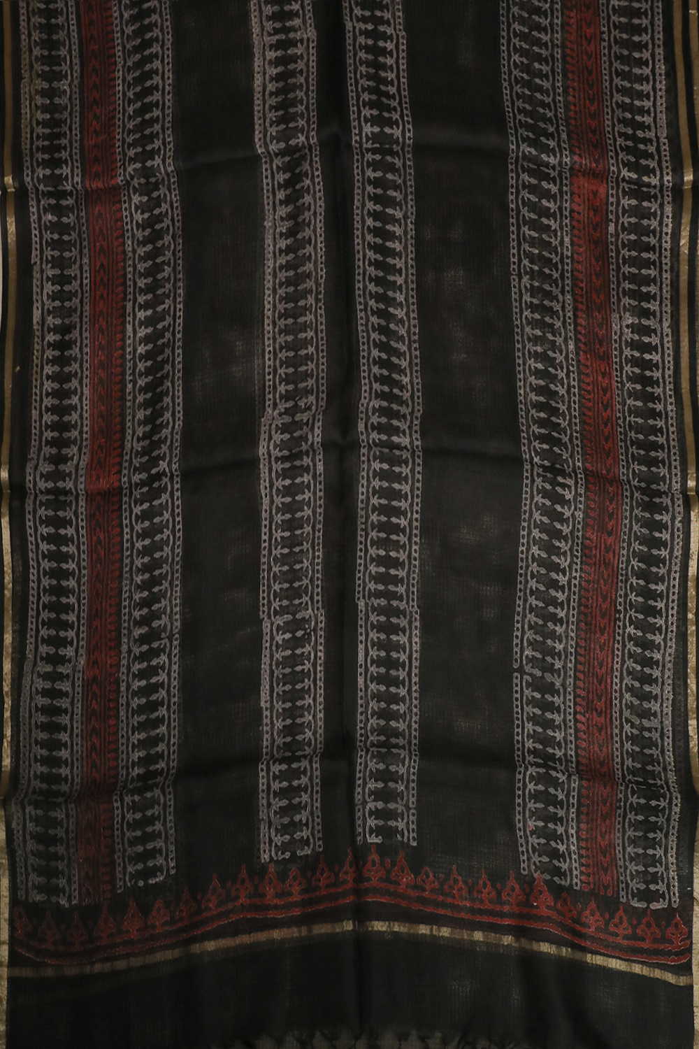 Grey Pattern - Black Block Printed Kota Silk Dupatta