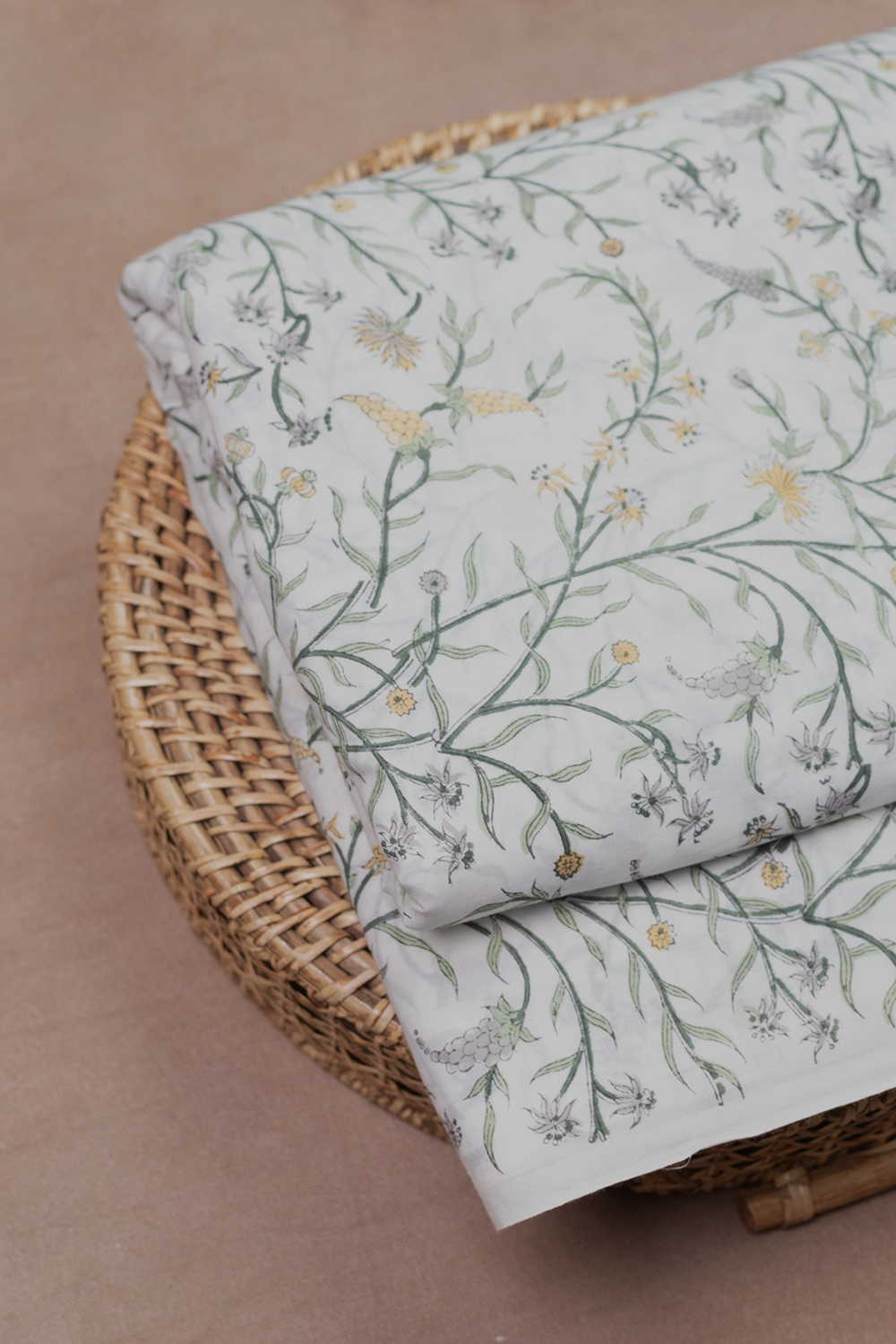 Floral Sanganeri imprints on soft cambric cotton brings with it the elusive elegance to add charm to your presence. Ideal for blouses, kurtas, kids dresses, cotton pants and anything in your stretch of imagination. The base fabric is thin and soft cotton. The design is parallel to the Length.
