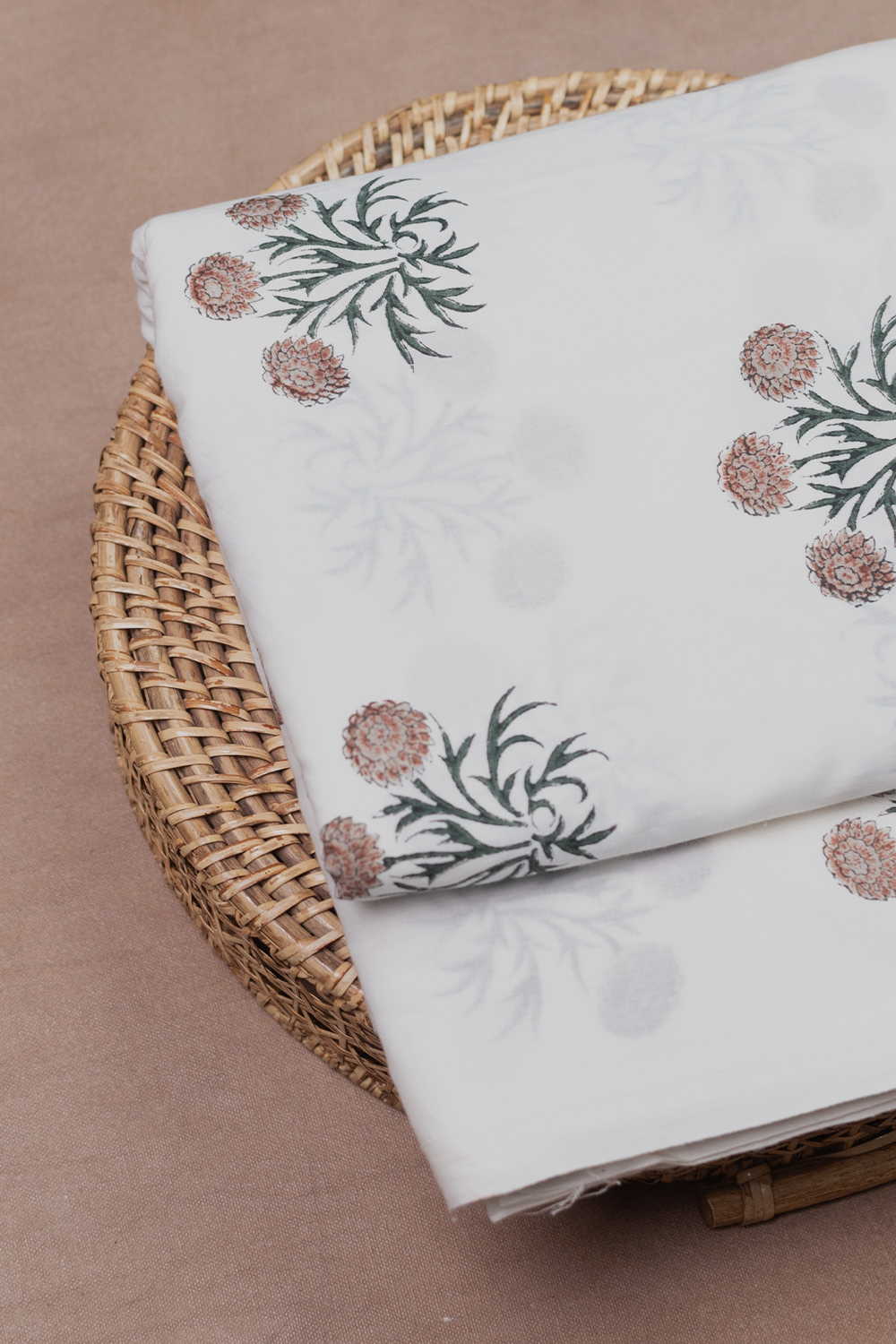 Floral Motifs - Cream Sanganeri Cotton Fabric