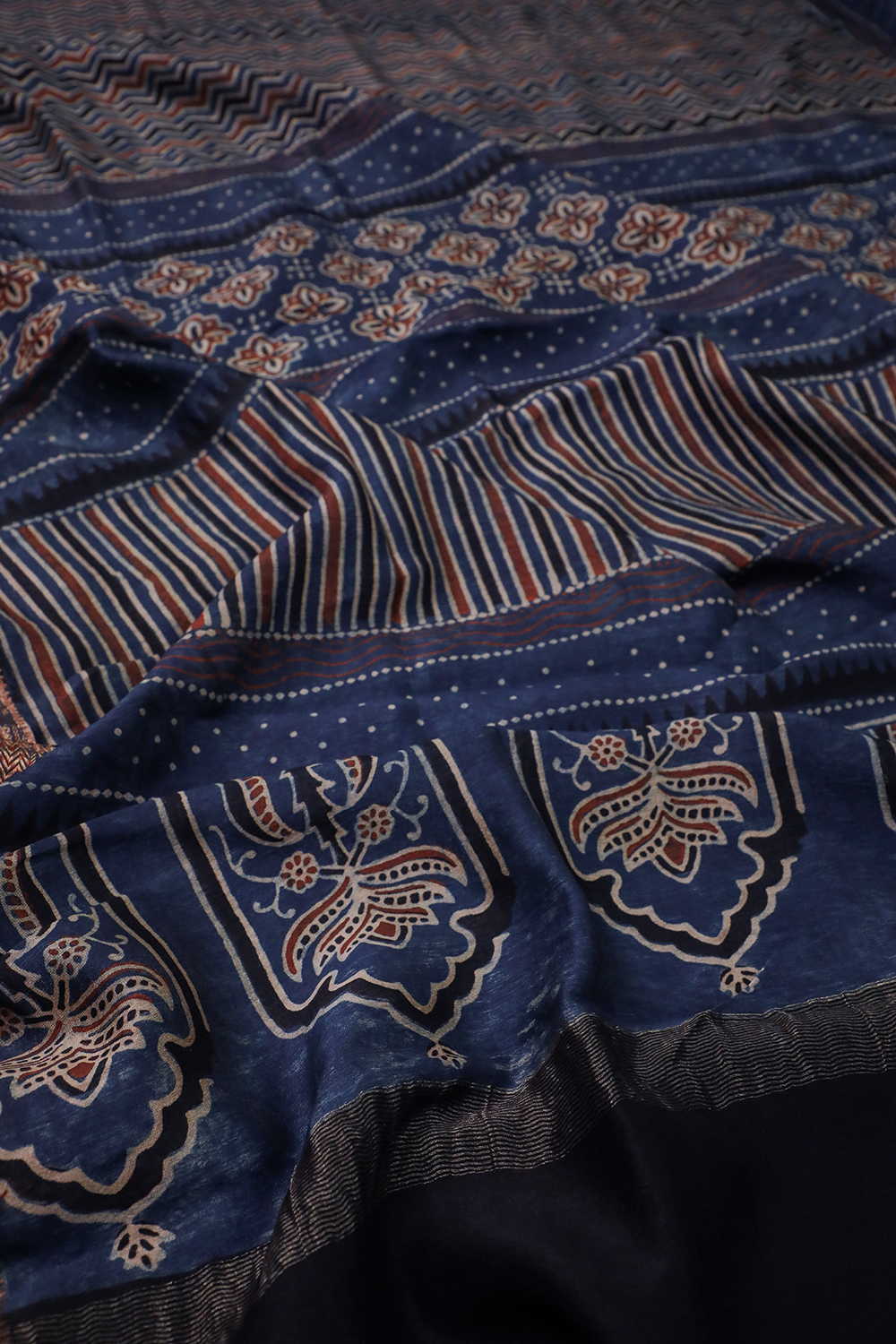 Chevron on Indigo Ajrak Maheshwari Silk Cotton saree