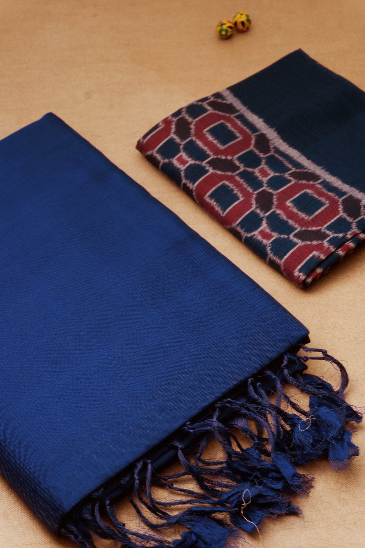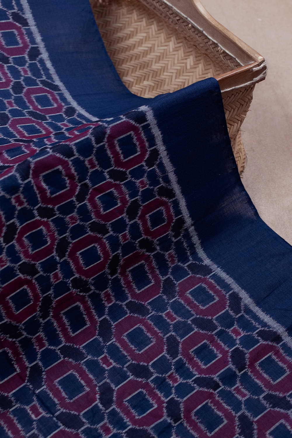 Deep Blue Mangalagiri Silk Cotton saree with Orissa Ikat Blouse