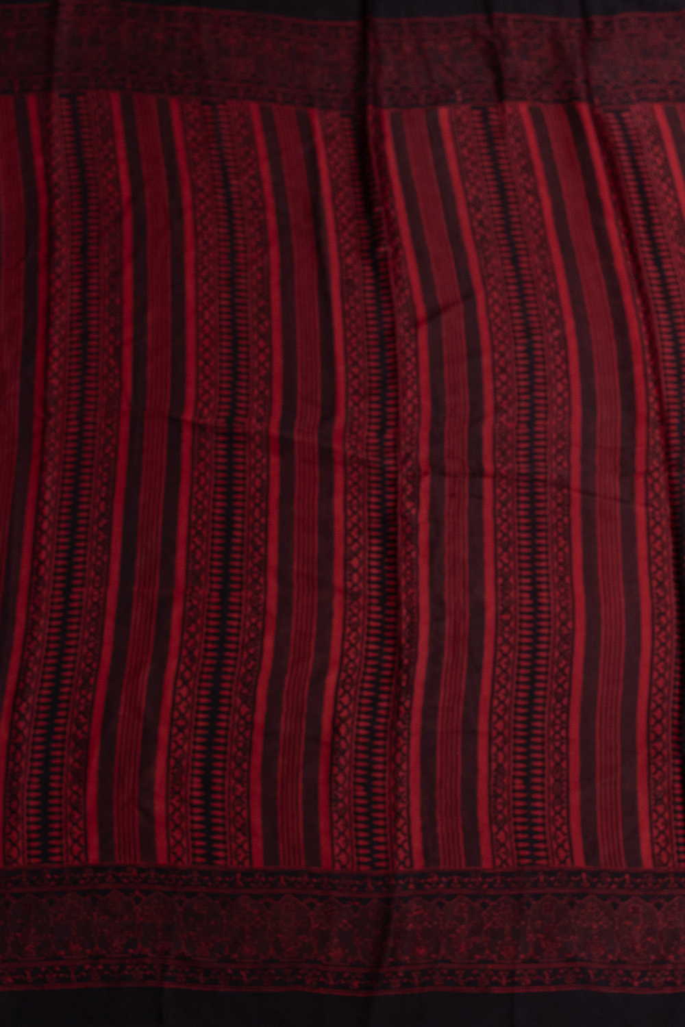 The sarees comes with the Patterned - Maroon Ajrak Modal Silk Blouse as in image 1.
