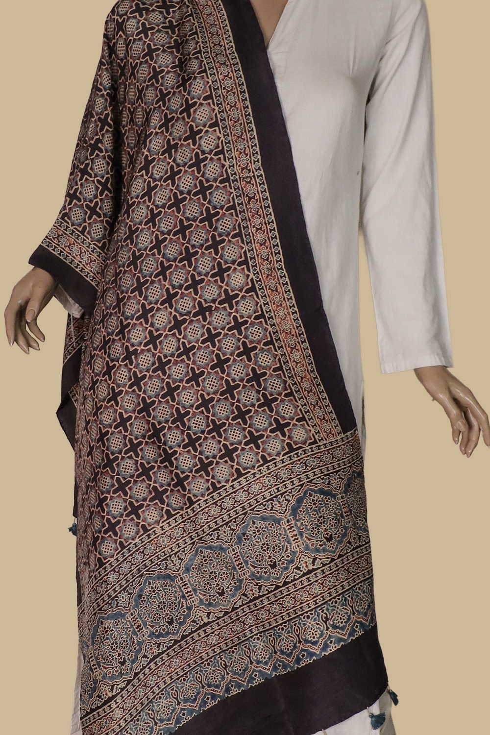 Material: Block Printed Ajrak Silk Stole