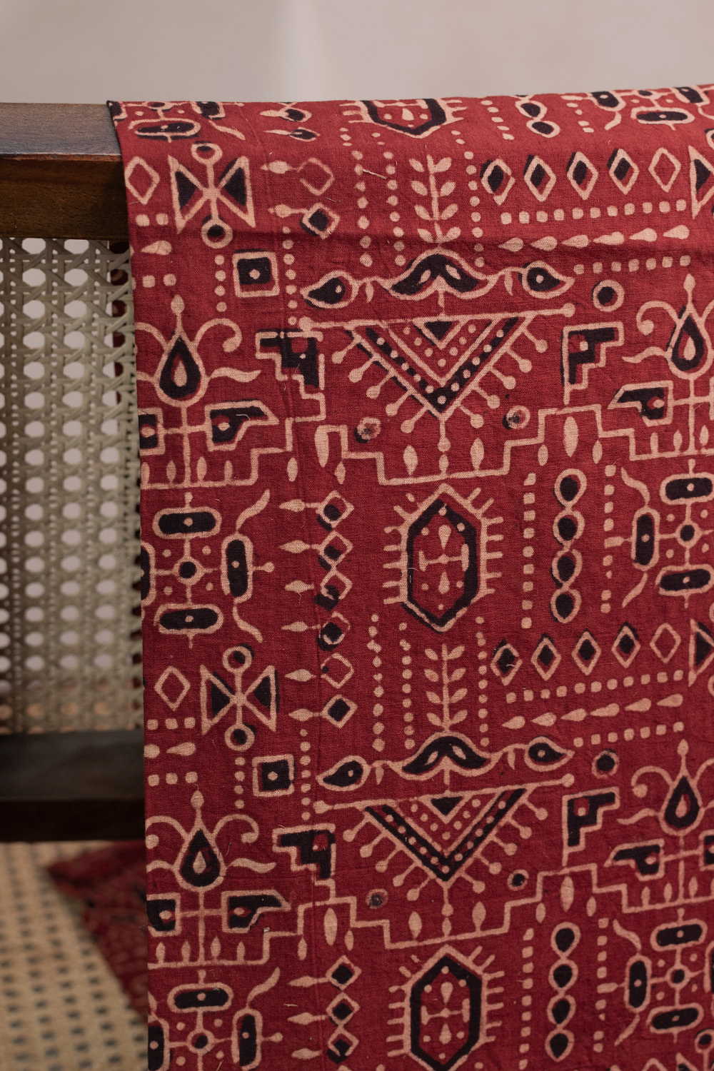 Patterned on Maroon Ajrak Cotton Fabric - 1m