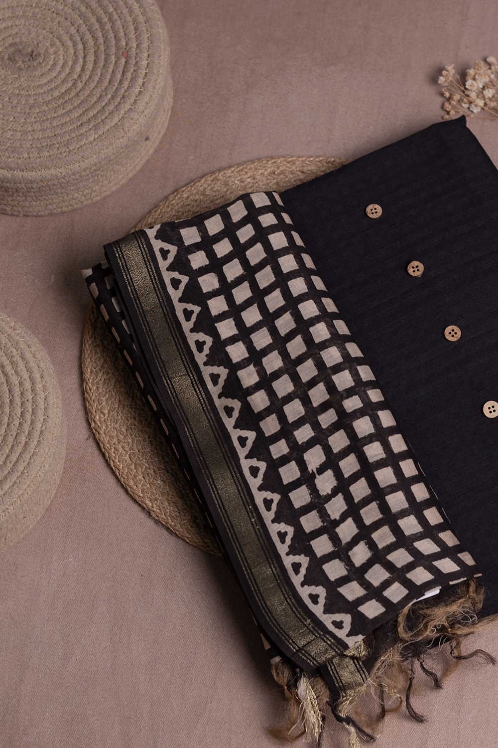 Pitch Black Mangalagiri Boddu Checks Top & Chanderi Dupatta