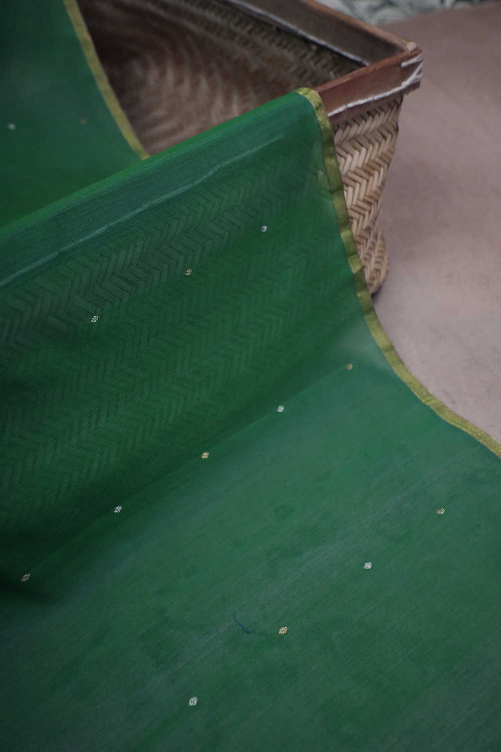 Dot Butta Dark Leaf Green Chanderi Silk Cotton Fabric - 2.3m
