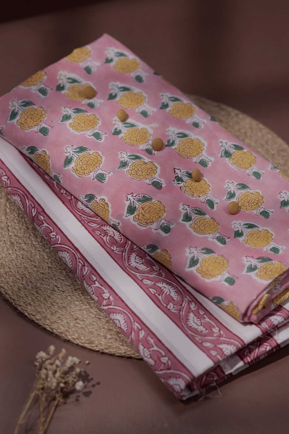 Yellow Buttas on Pink Sanganeri Cotton Top with Bottom