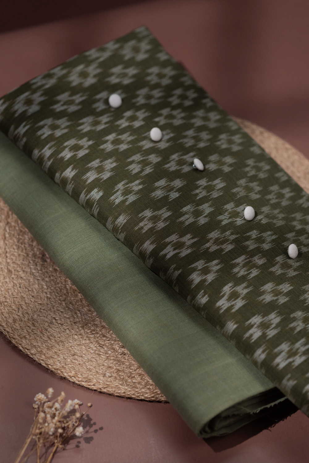 Dark Olive Green Orissa Ikat Top with Handspun Bottom
