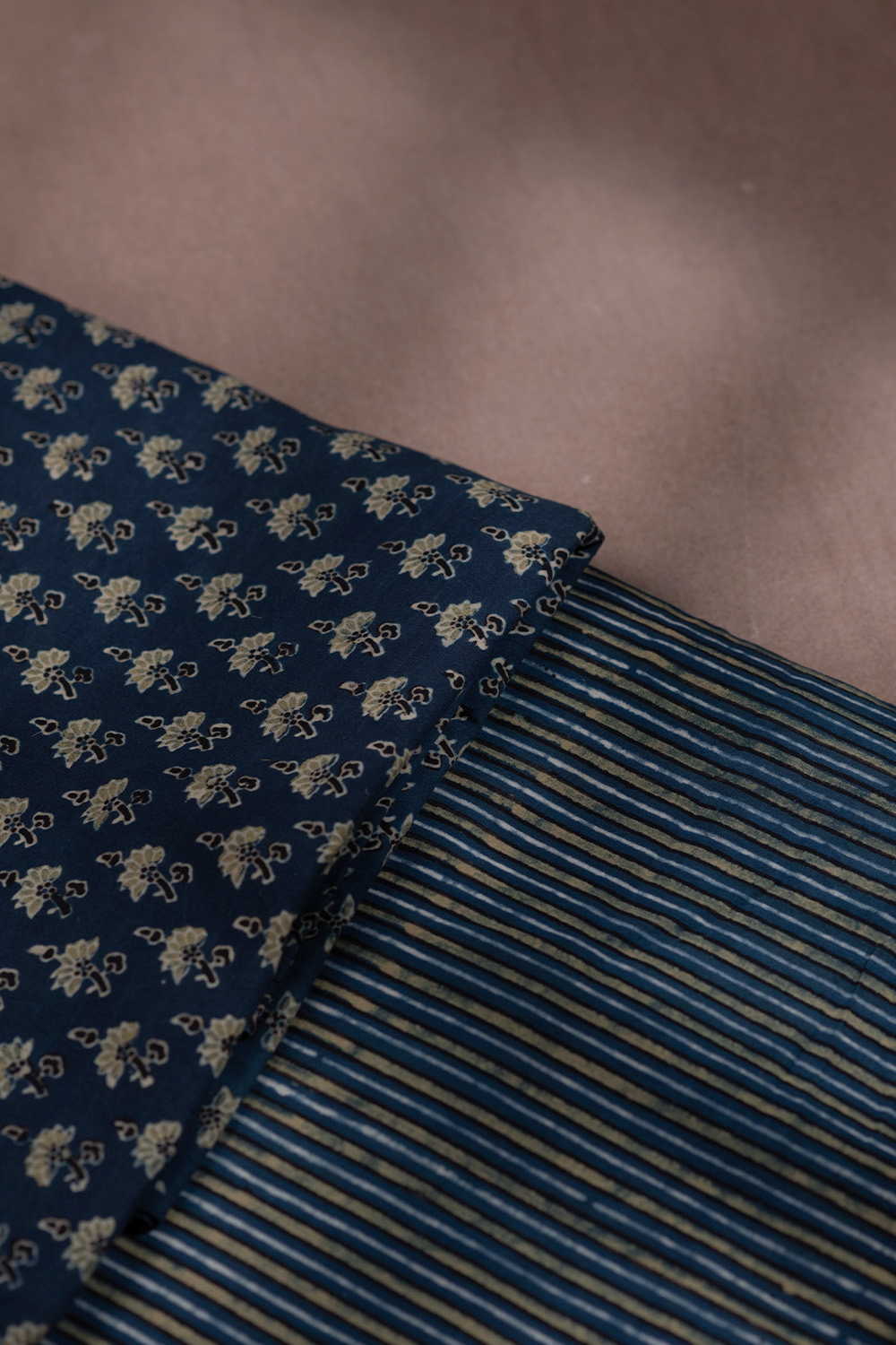 Green Motifs on Indigo Ajrak Cotton Top and Bottom