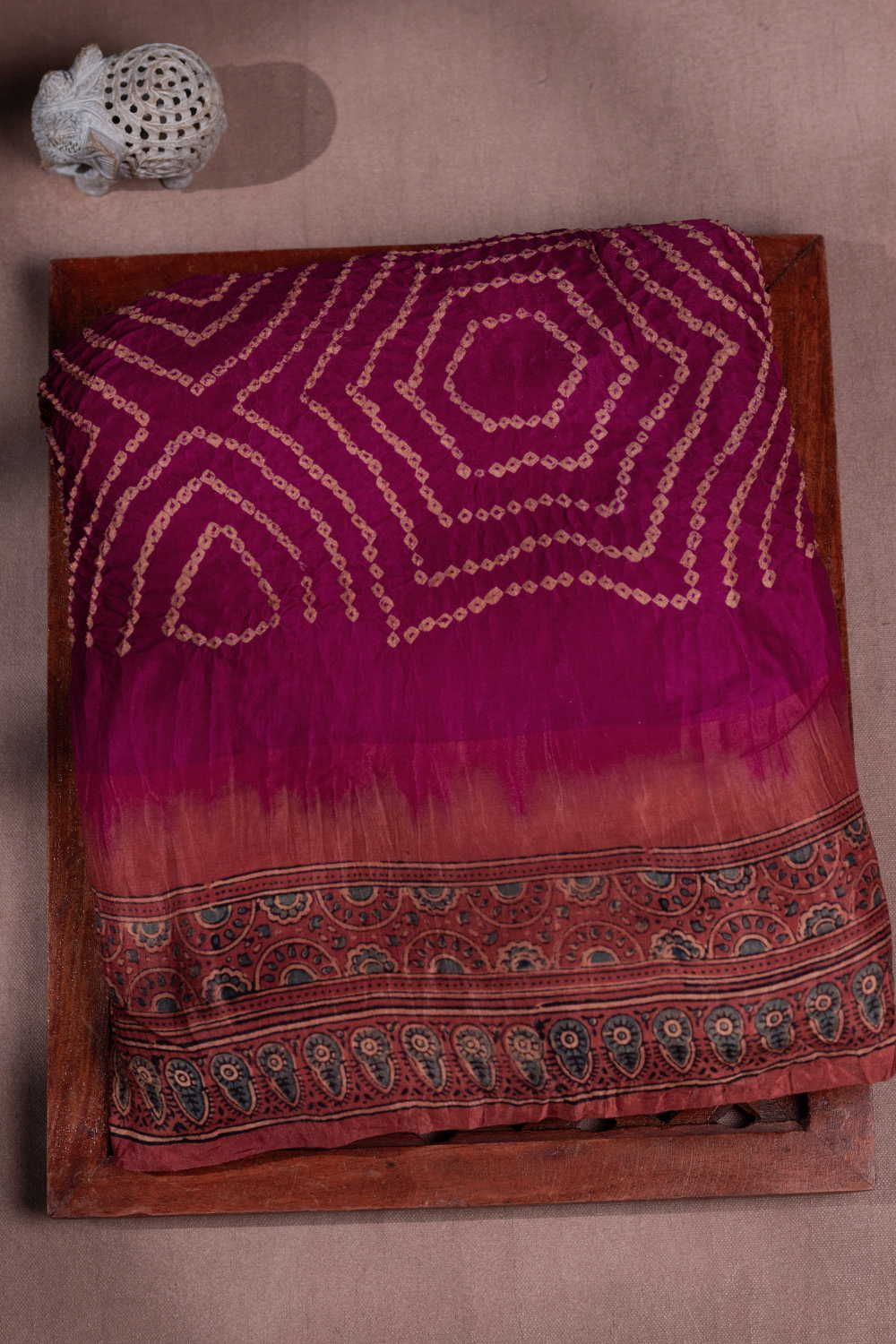 Magenta Pink Ajrak Bandhani Gajji Silk Saree