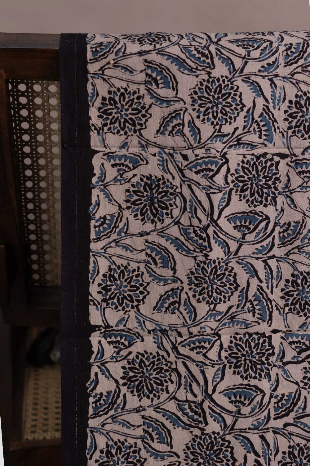 The Intricate block prints from Kutch with their Sindhi roots comes in definite geometric and floral patterns in natural shades. Ajrak is very distinct from the other styles of block printing and can be identified with the intricacy of prints and the natural tone. Soft cambric cotton fabric with Ajrak block prints - define your unique style. The Design is Parallel to the Length.