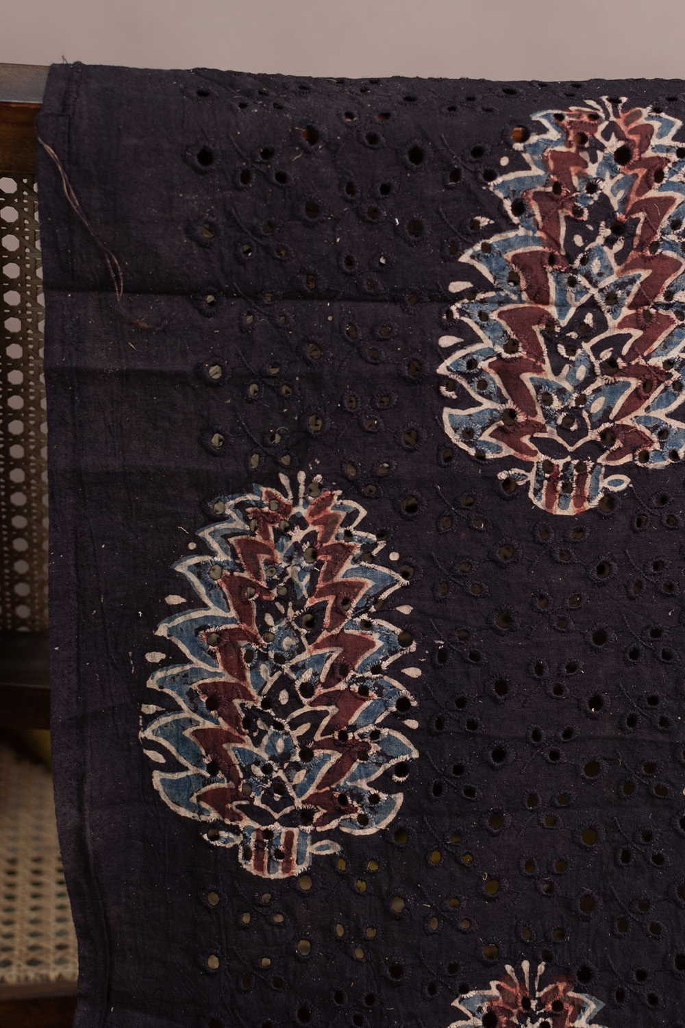 Bold Bloom on Black Ajrak Hakoba Fabric