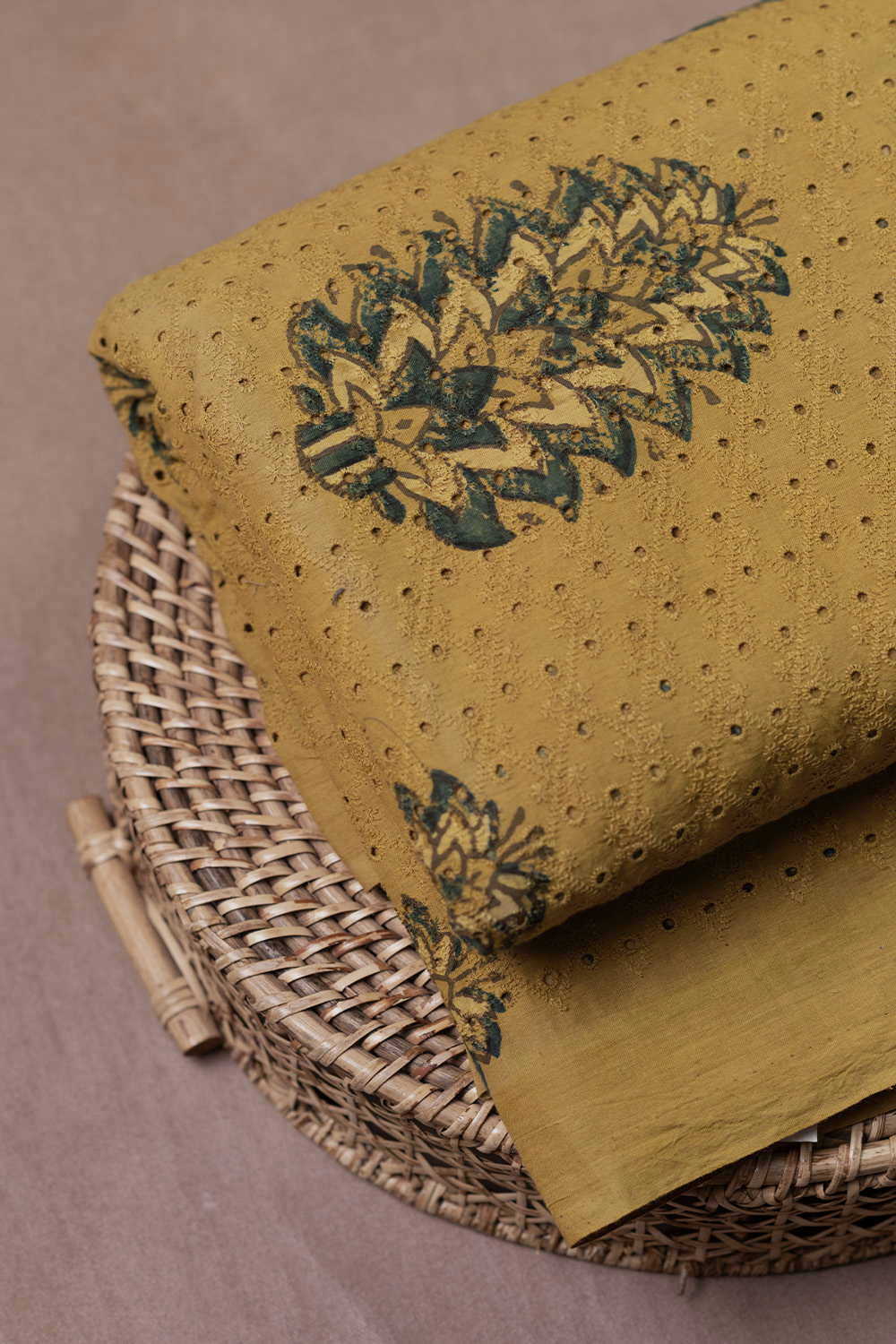 Mustard Yellow Ajrak Hakoba Fabric