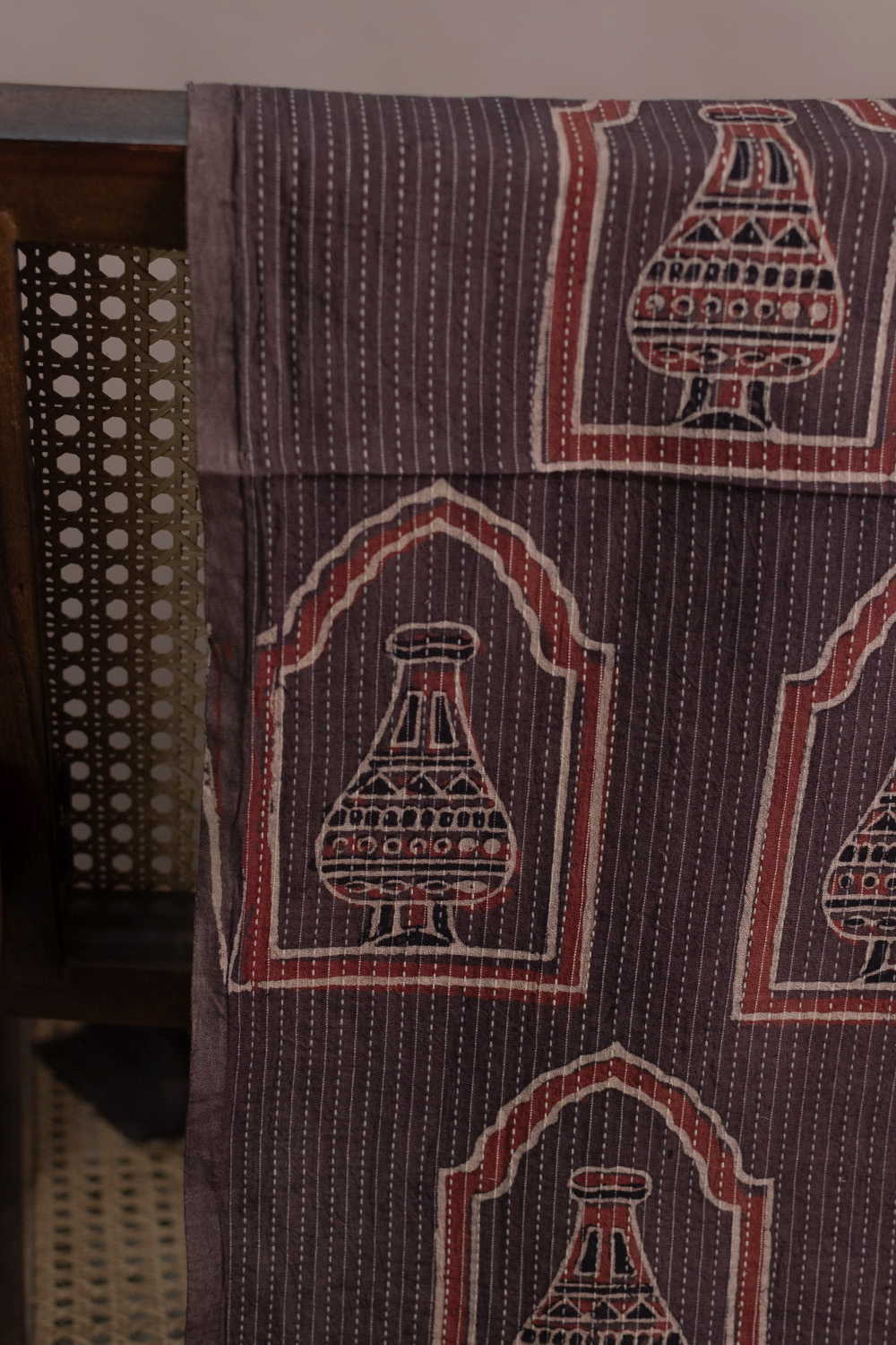 Faded Brown Kantha Stitched Ajrak Cotton Fabric