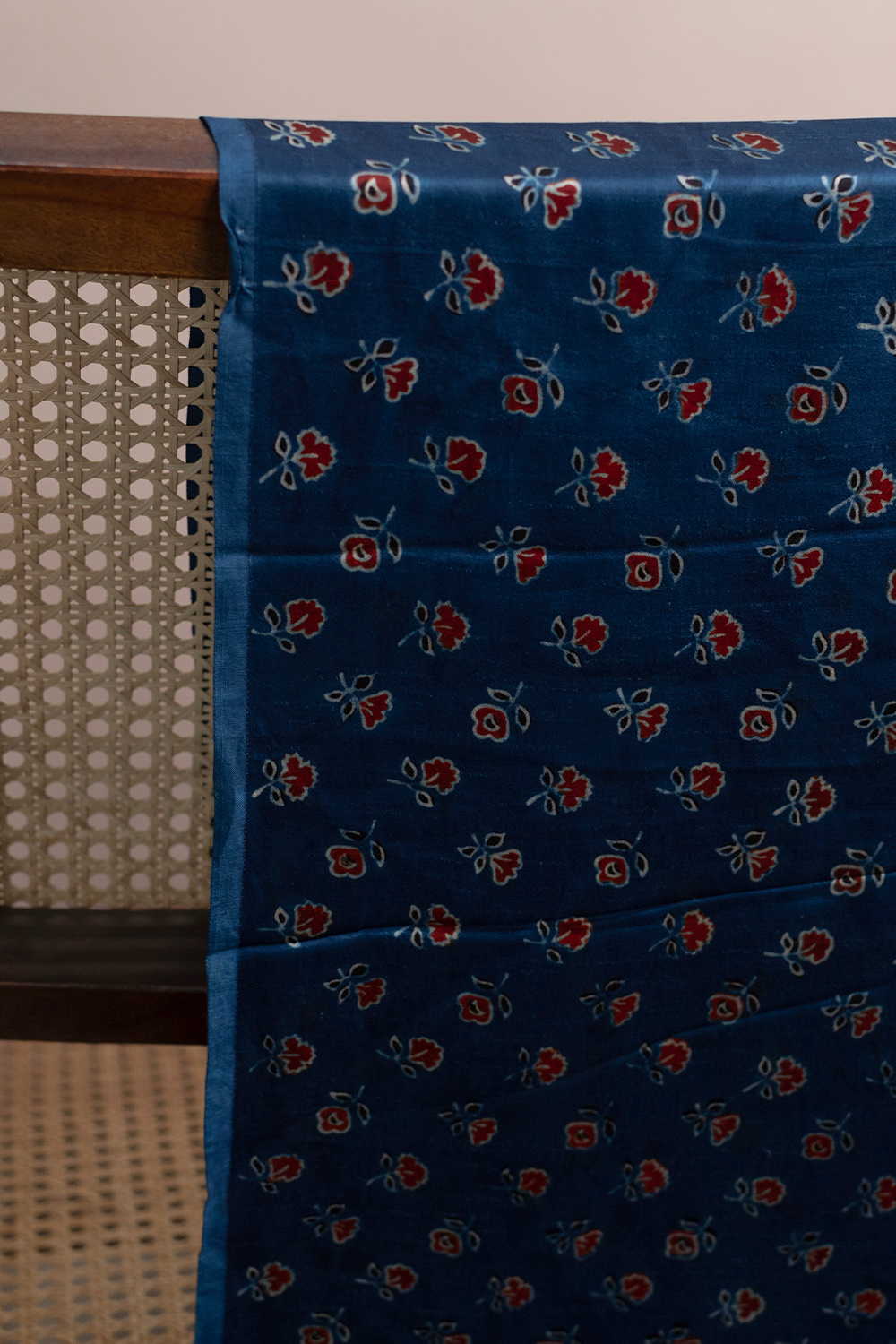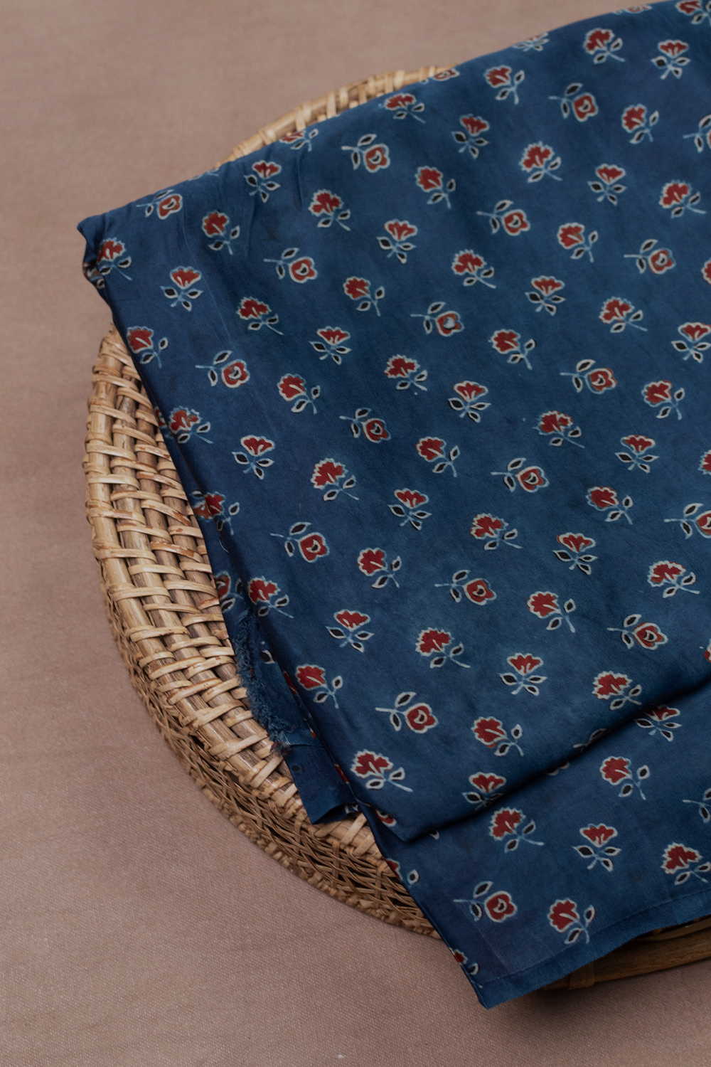 Maroon Florets - Indigo Ajrak Modal Silk Fabric