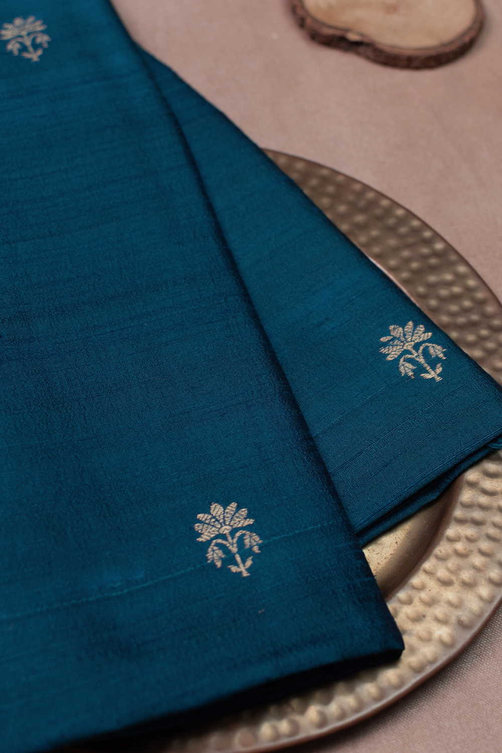 Peacock Blue - Floral Butta Banarasi Silk Fabric
