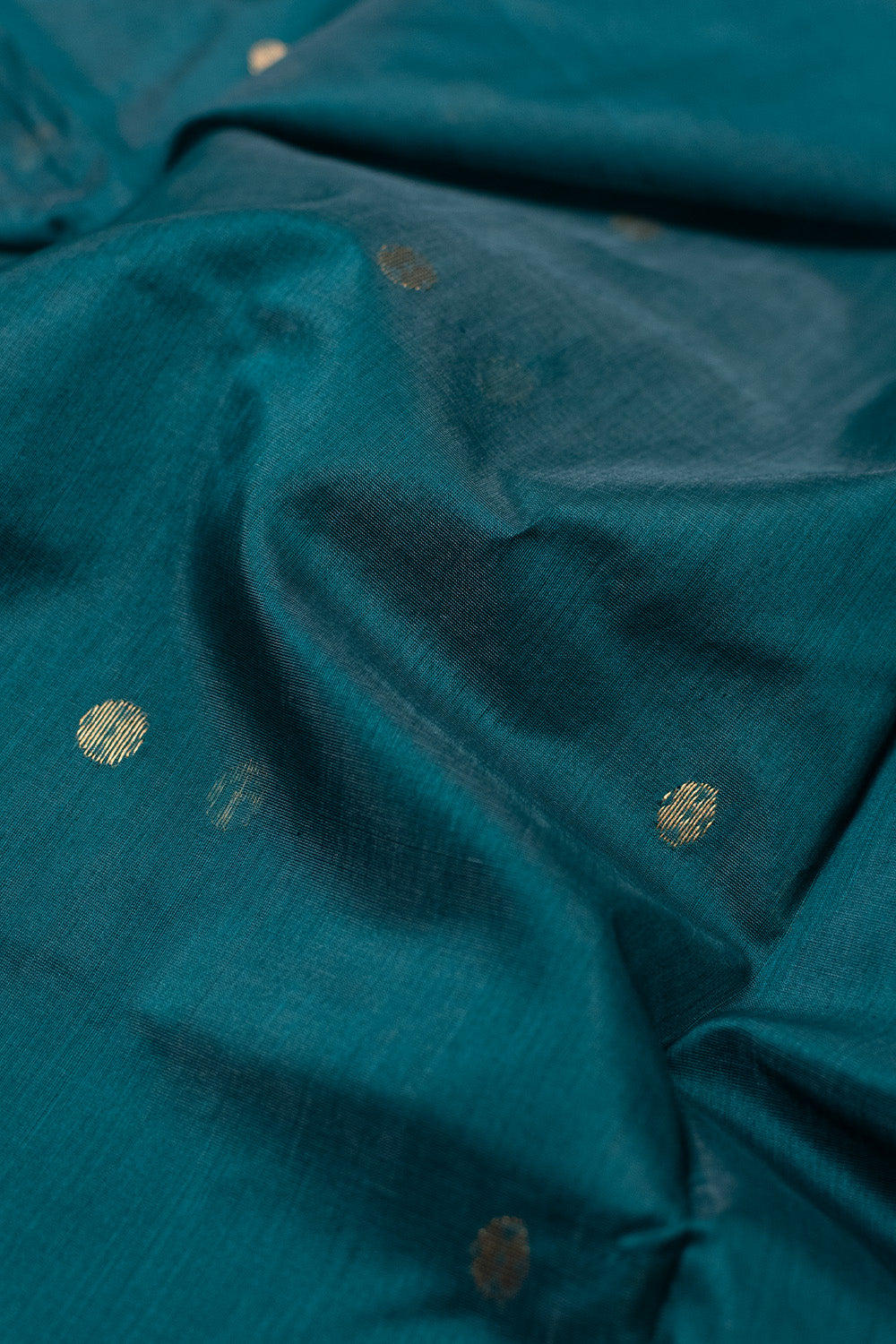 Zari Butta on Green Chanderi Silk Cotton Fabric