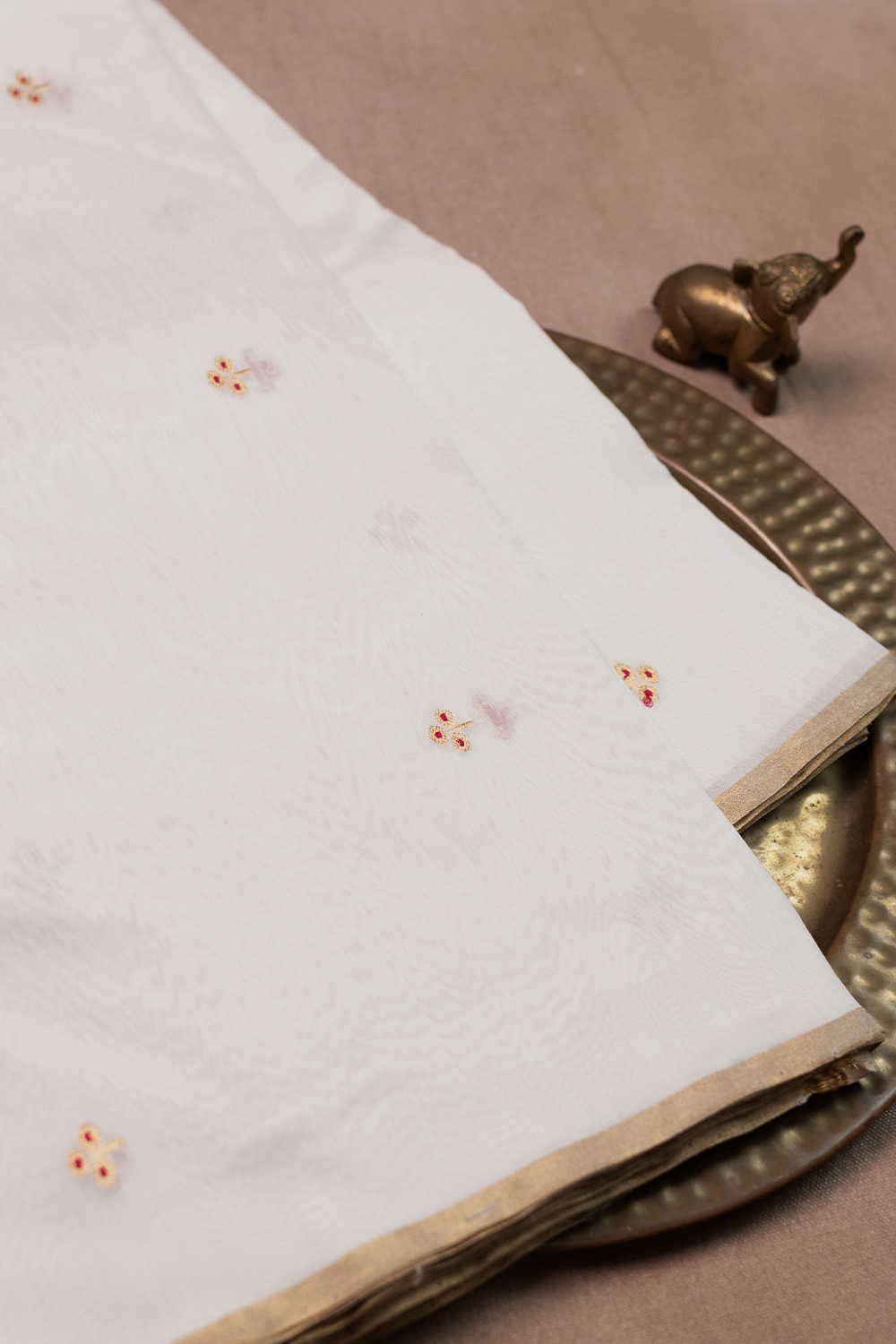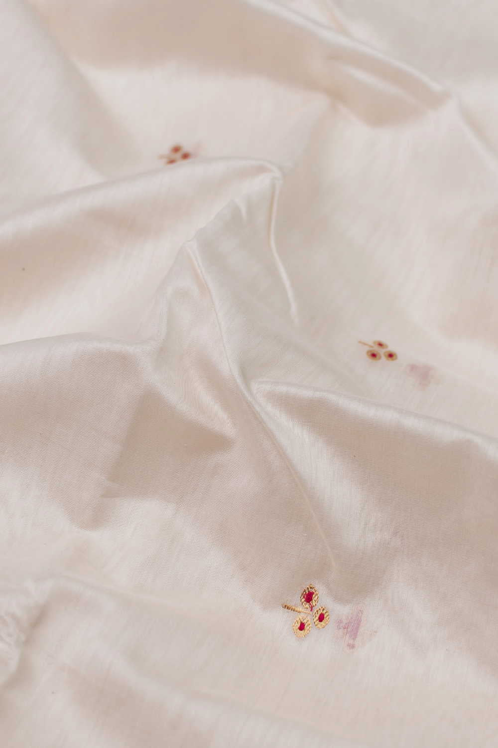 Cream with Floral Zari Butta Chanderi Silk Cotton Fabric