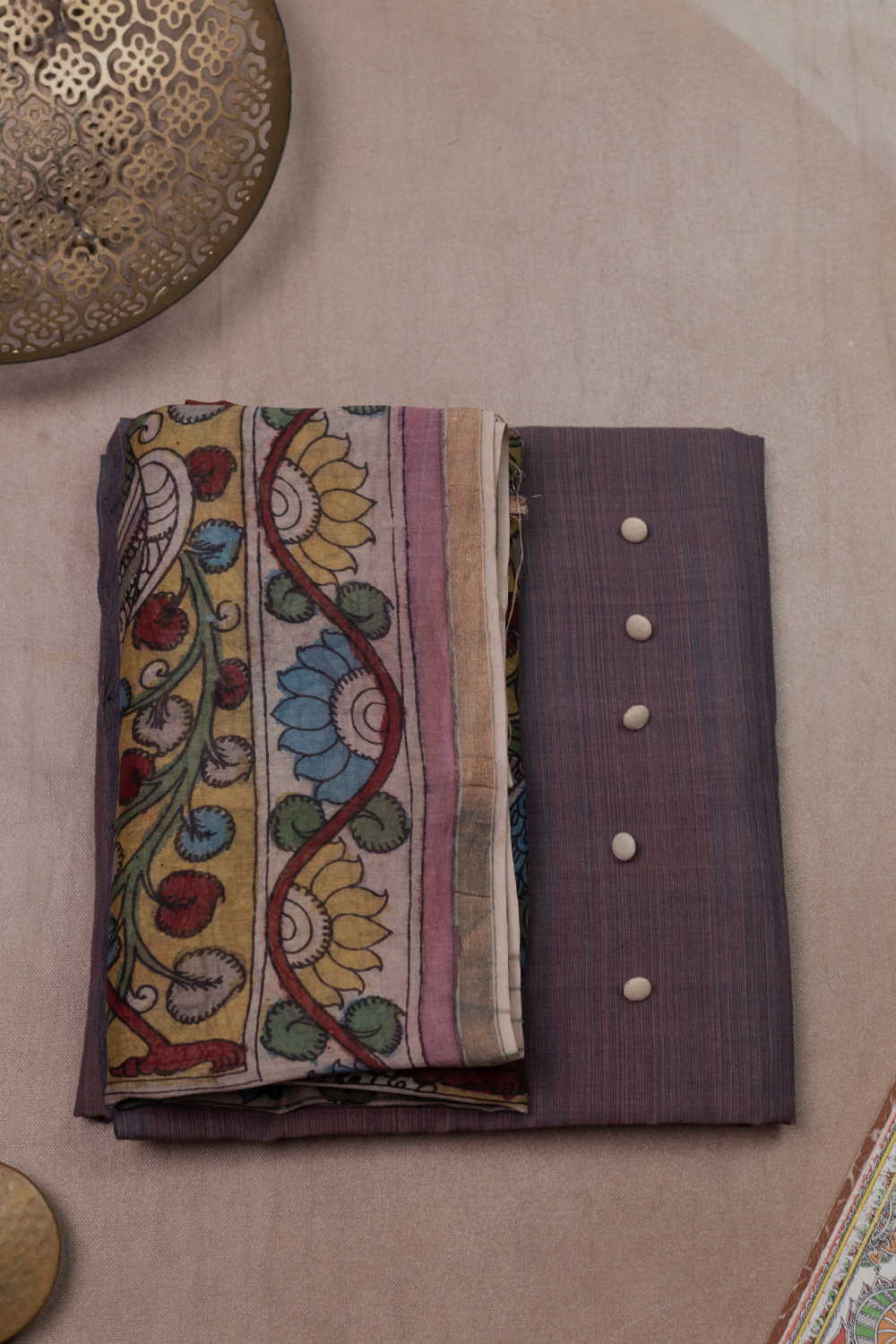 Shade of Purple Mangalagiri Top & Painted Kalamkari Dupatta