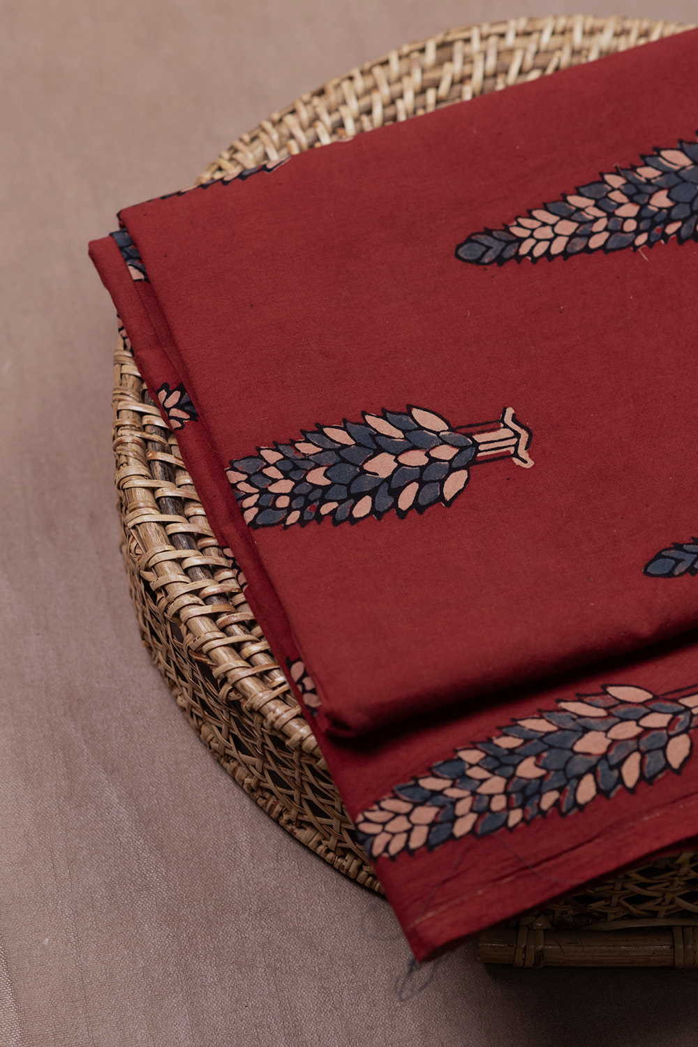 Big Leaf Butta - Maroon Ajrak Cotton Fabric