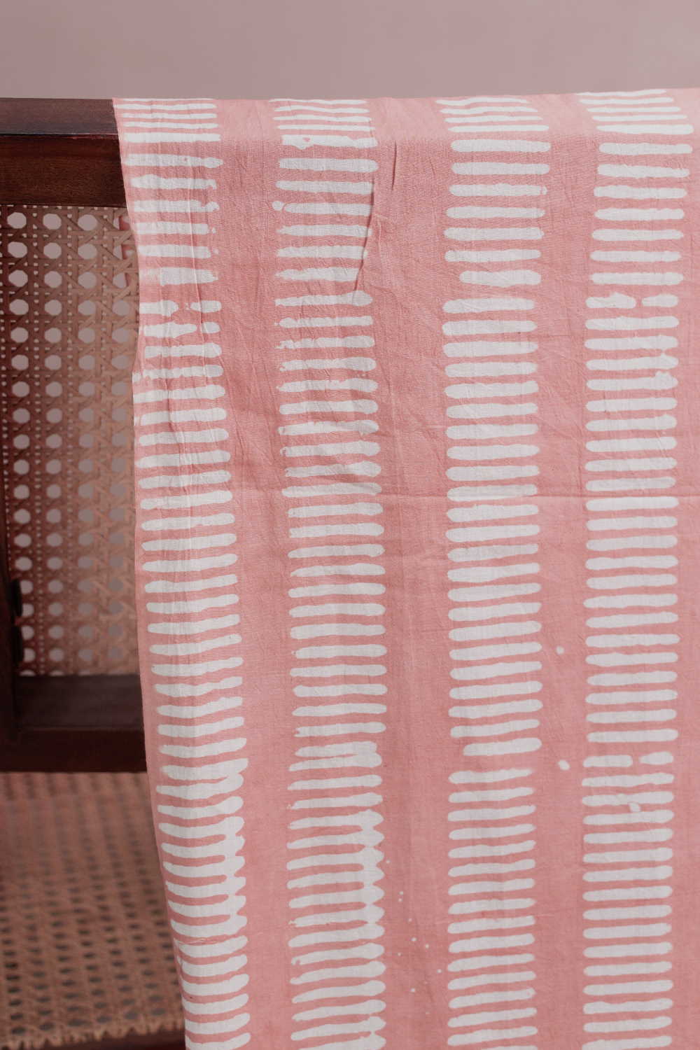 Blush Pink with Stripe Pattern Block Printed Batik Cotton Fabric