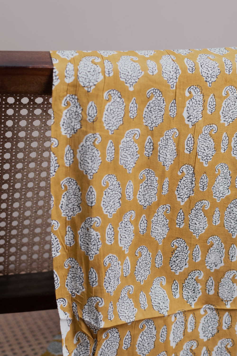 Paisley Butta - Yellow Sanganeri Cotton Fabric - 1.85m