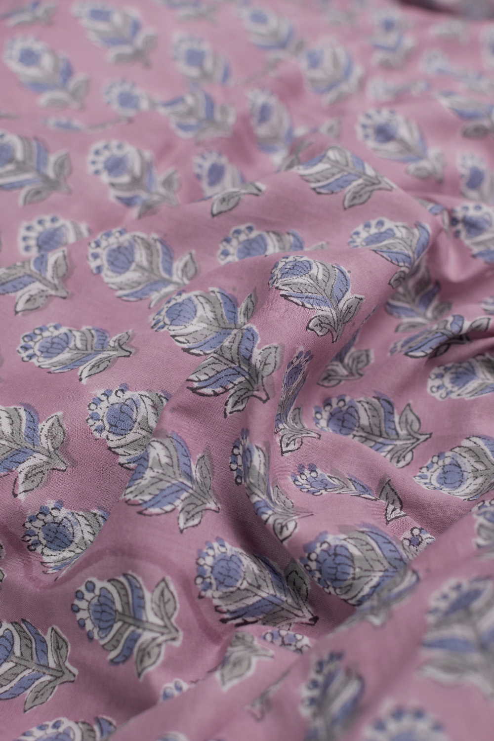 Periwinkle on Rose Sanganeri Cotton Fabric