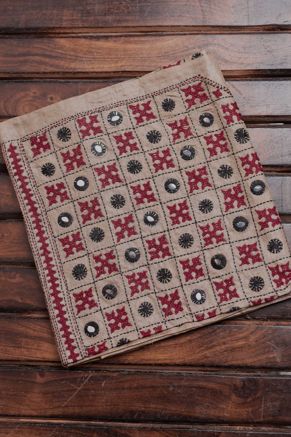 Hand-crafted Intricately Embroidered Kantha tussar silk blouse material. Add elegance to your wardrobe with a charming collection of Silk blouses. Mix and match textures, fabrics, and colors to create a style you can call your own. Pair it up with plain tussar sarees for a desi look.