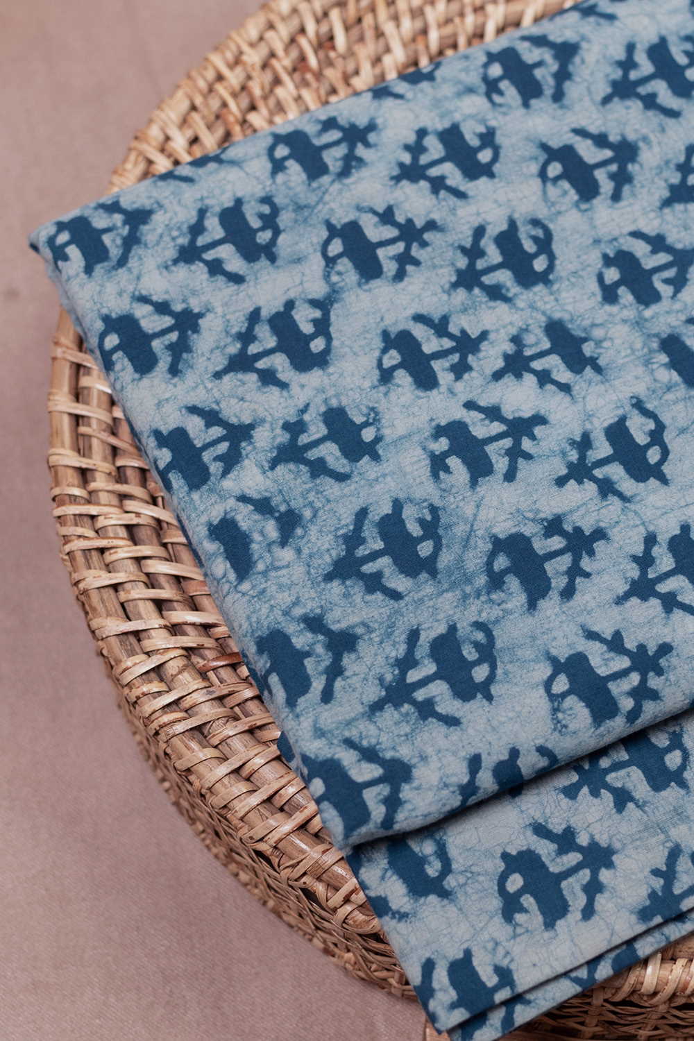 Indigo Florets - Cream Dabu Cotton Fabric - 0.5m