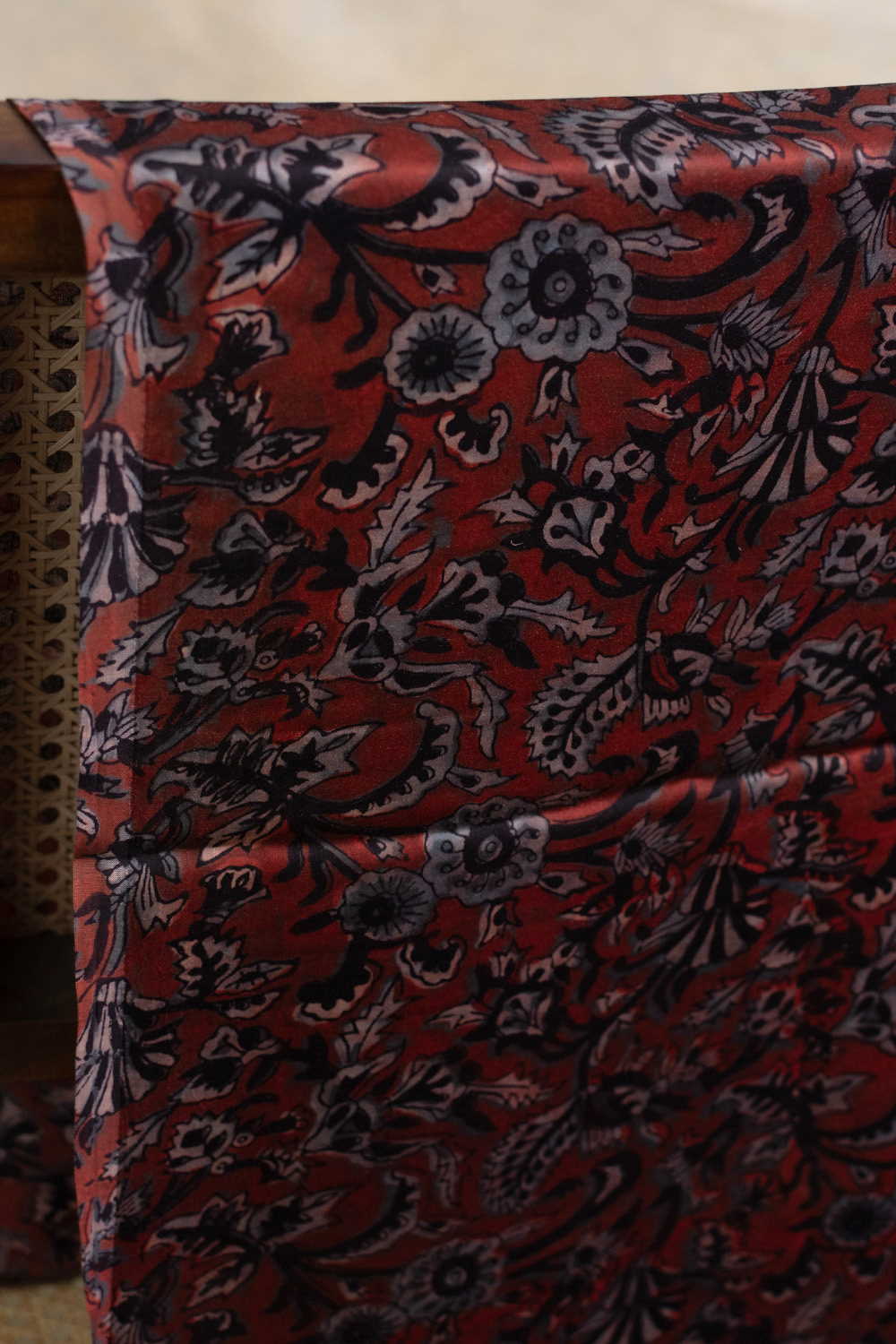 Floral Garden Block Printed Modal Silk Fabric - 1m