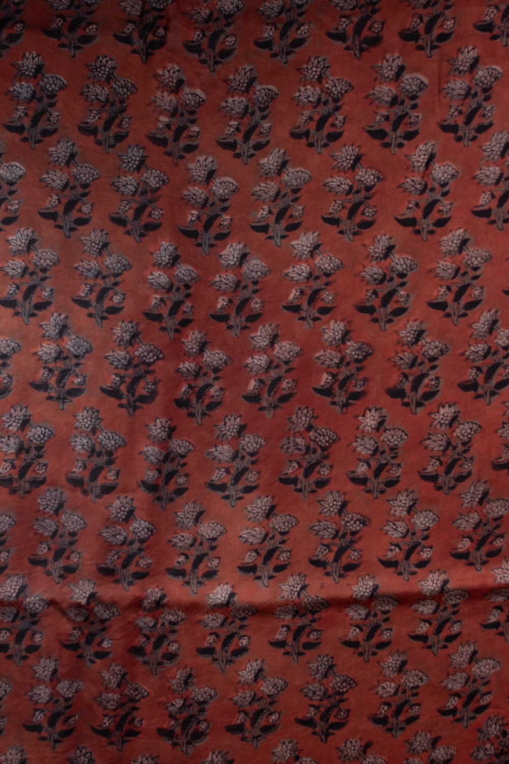 Maroon Block Printed Modal Silk Fabric - 0.5m