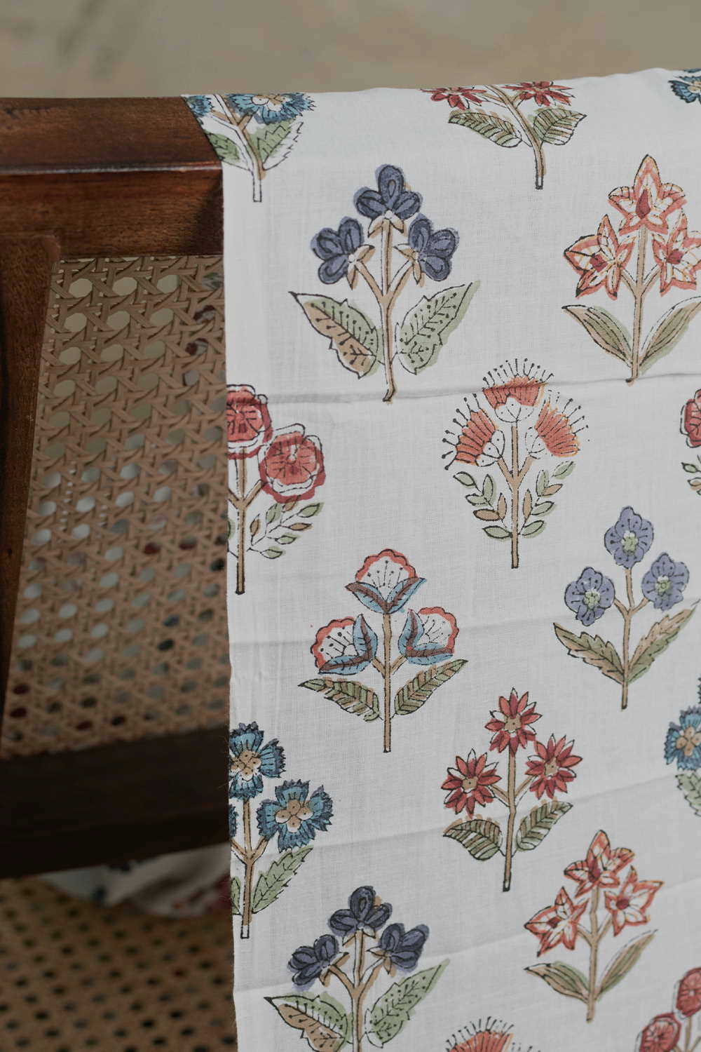 Floral Sanganeri imprints on soft cambric cotton brings with it the elusive elegance to add charm to your presence. Ideal for blouses, kurtas, kids dresses, cotton pants and anything in your stretch of imagination. The base fabric is thin and soft cotton. The design is parallel to the Length.