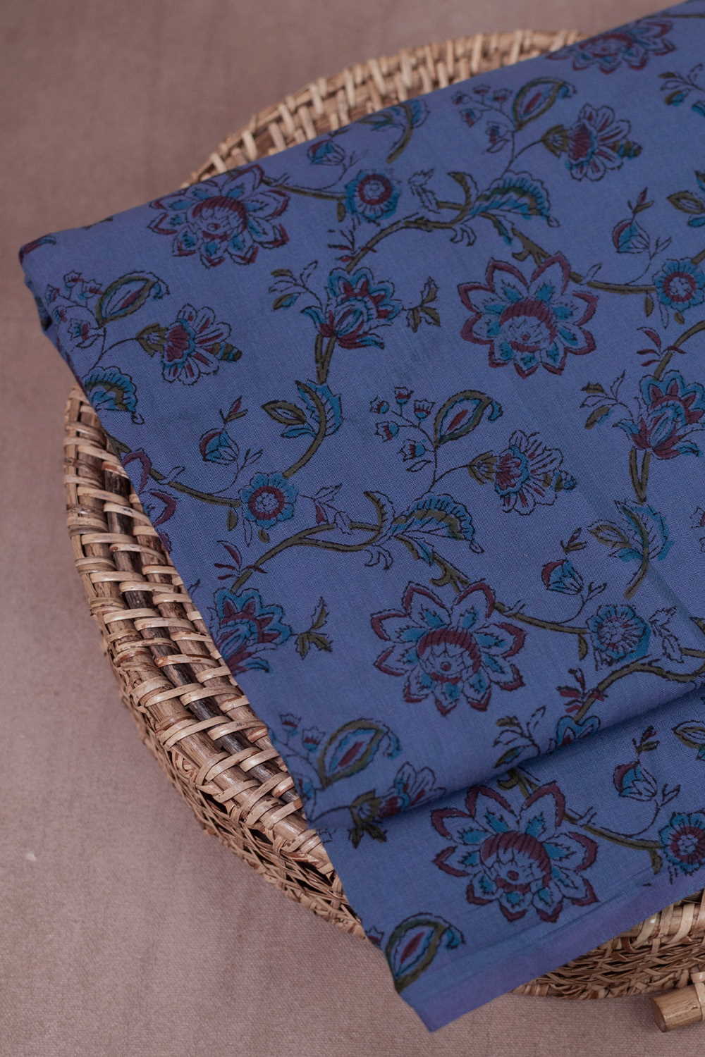 Purple Garden Block Printed Mangalagiri Cotton Fabric - 1.85m