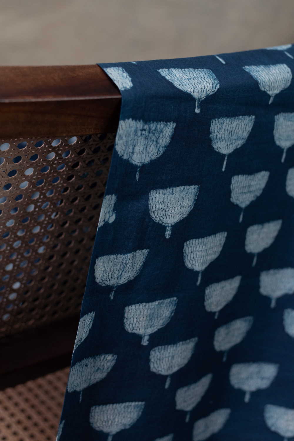 Floral on Indigo Dabu Cotton Fabric - 2m