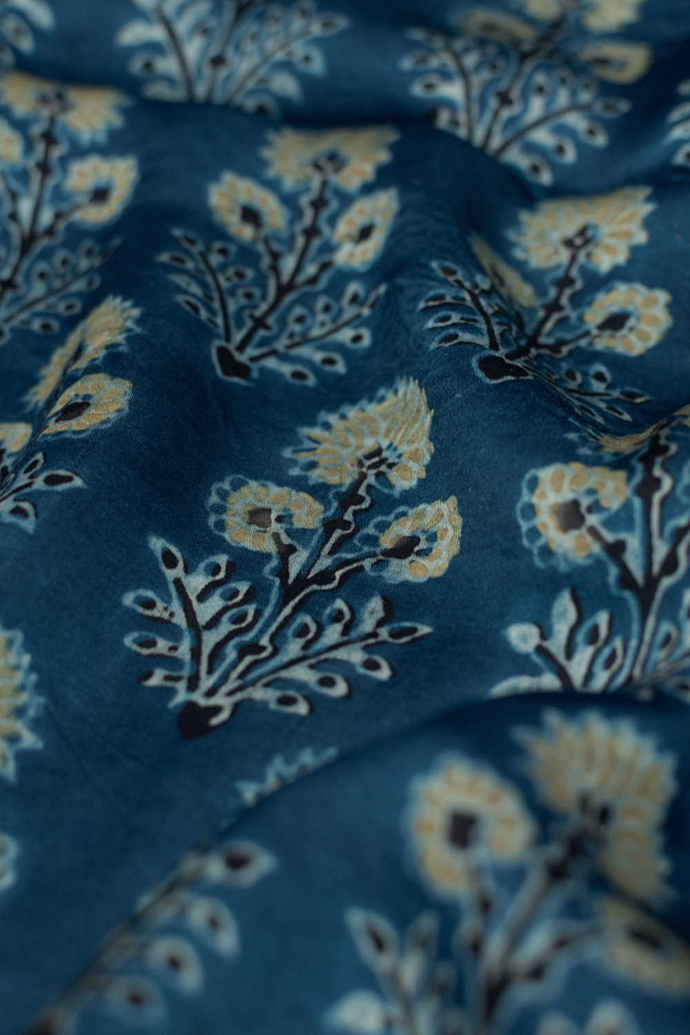 Florets on Indigo Ajrak Modal Silk Fabric - 1.6m