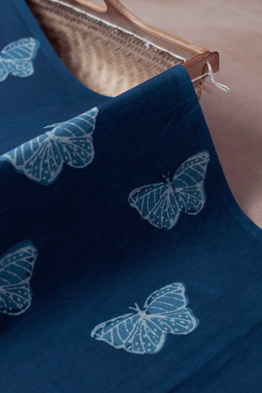 Butterflies - Indigo Dabu Cotton Fabric - 0.85m