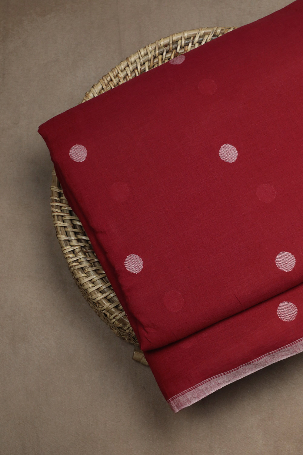 Dark Red with Cream Butta Jamdani Cotton Fabric - 1m