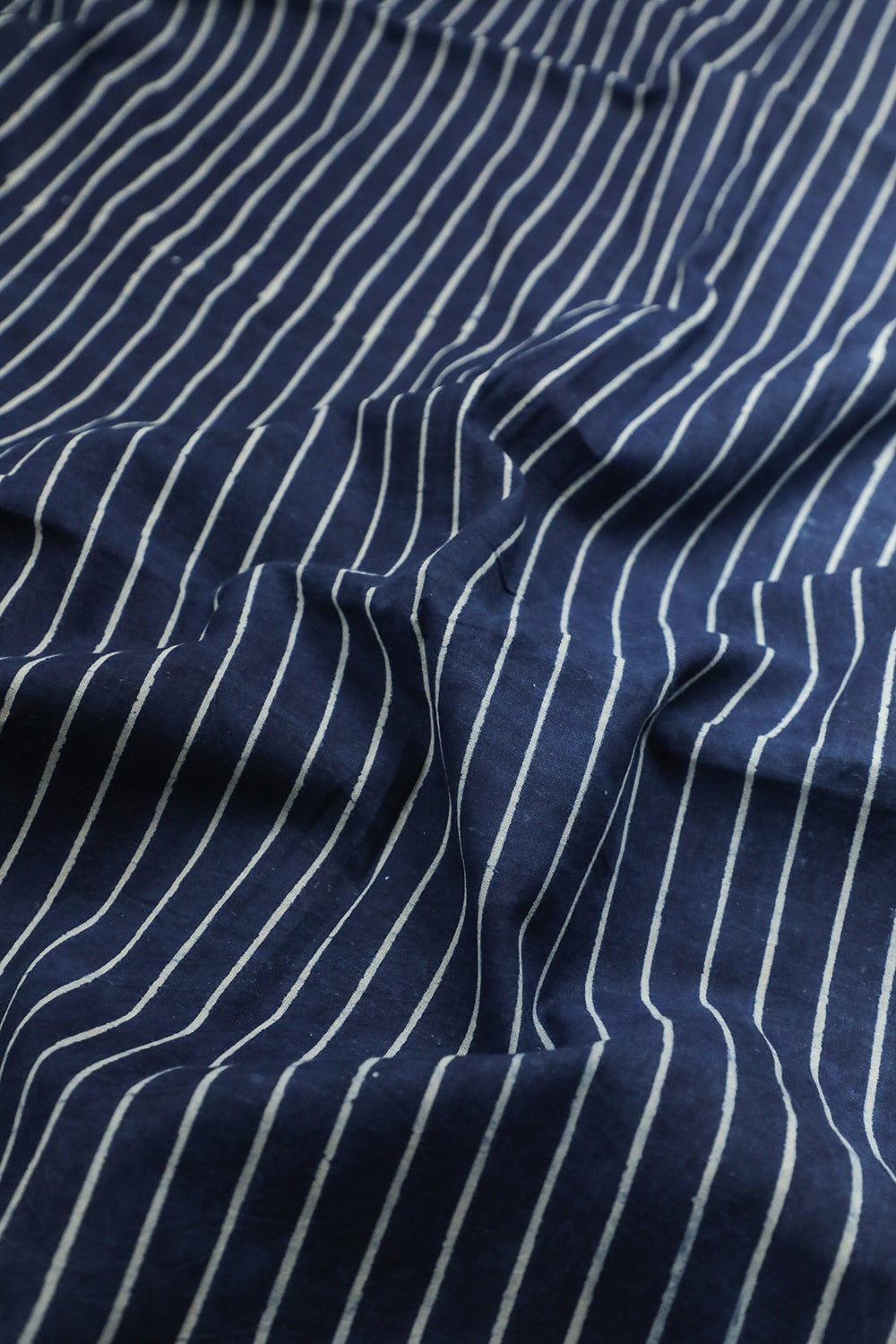 Indigo with Stripes Block Printed Cotton Fabric - 0.5m