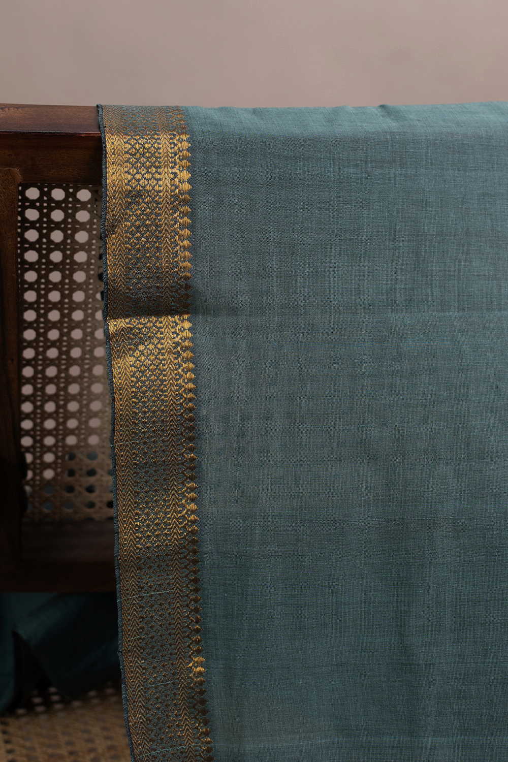 Handloom Mangalagiri cotton fabric with the traditional zari border rendering a festive look. It's a superfine weave with golden zari border. When you want to keep it simple but refreshingly traditional - Slow timeless fashion.