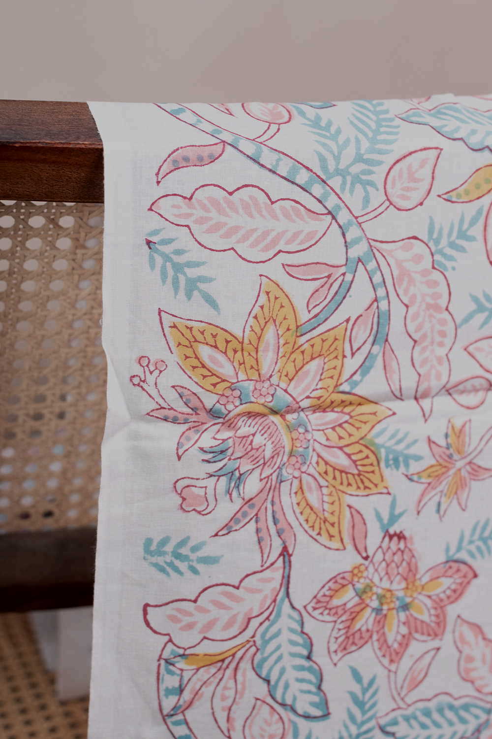 Floral Sanganeri imprints on soft cambric cotton brings with it the elusive elegance to add charm to your presence. Ideal for blouses, kurtas, kids dresses, cotton pants and anything in your stretch of imagination. The base fabric is thin and soft cotton. The design is parallel to the Length.