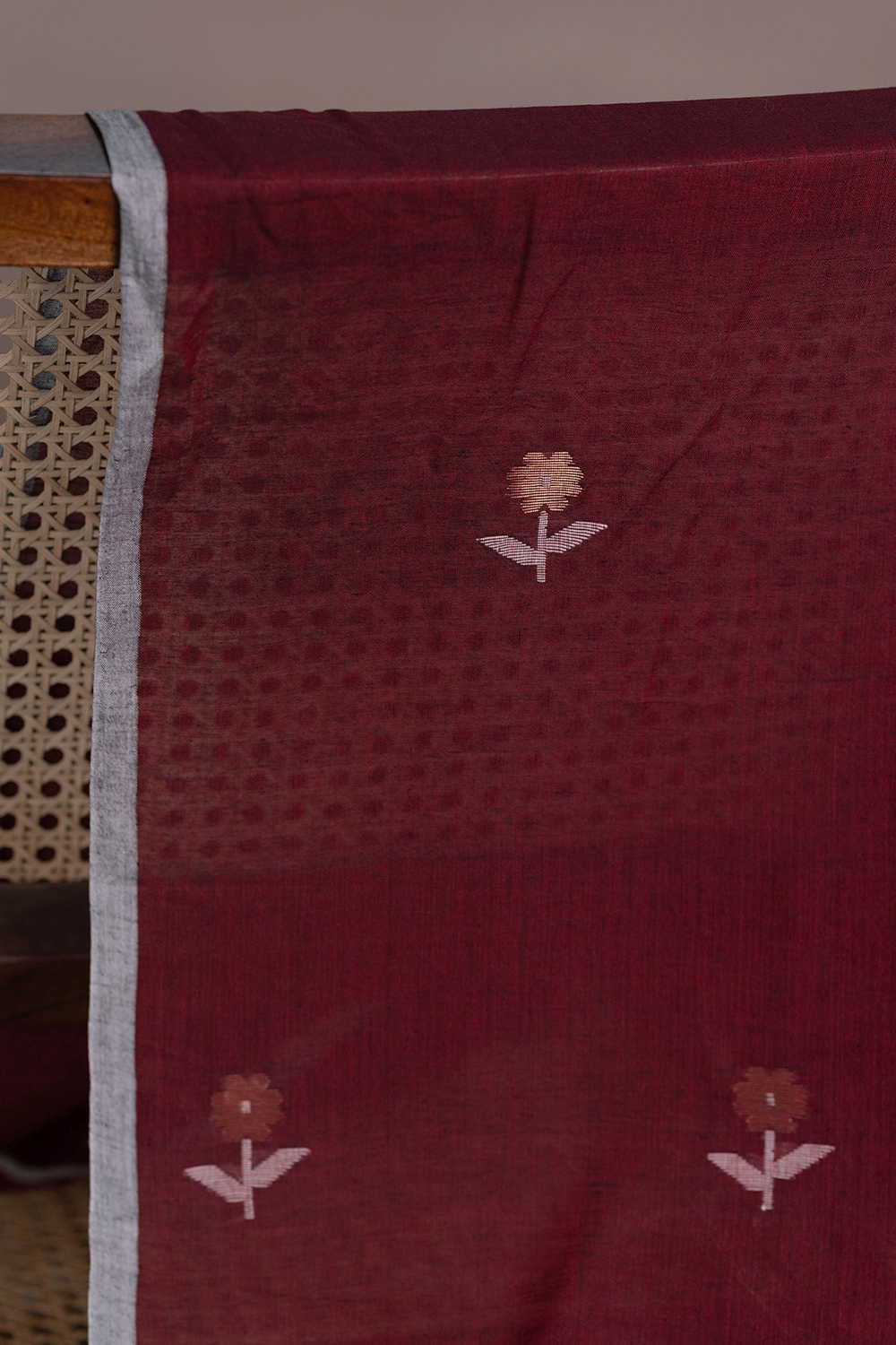 Crimson Petal Weave Jamdani Cotton Fabric