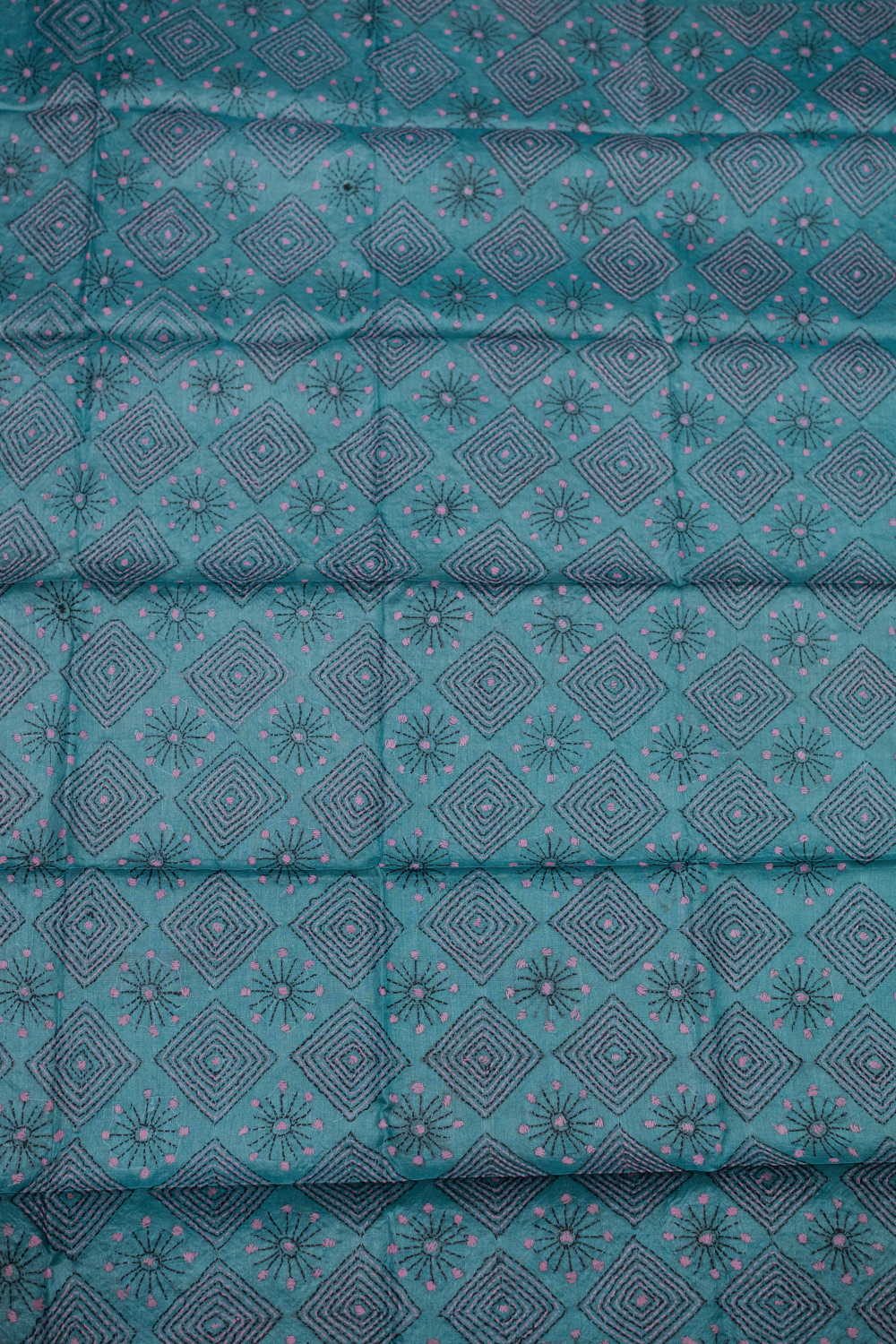 Green Mangalagiri Cotton saree with Kantha Blouse